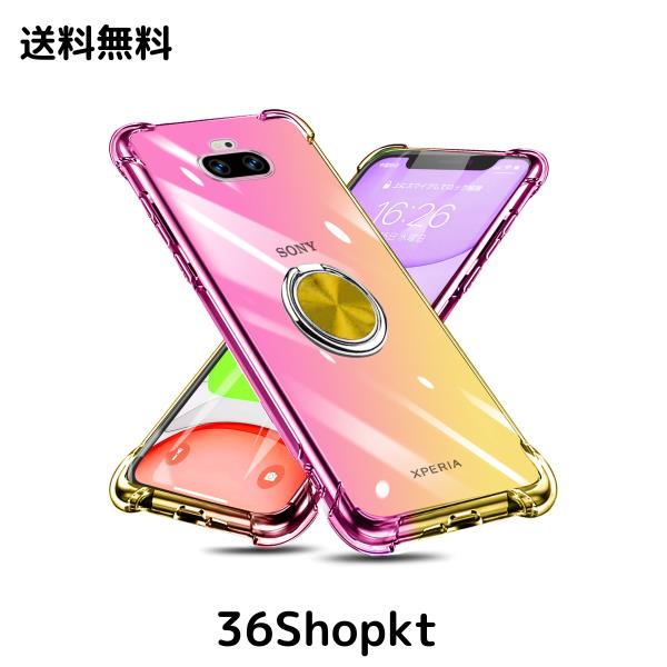 Xperia 8 ケース リング付き クリア TPU グラデーション色 SOV42 902SO ケース 耐衝撃 ソニー エクスペリア8カバー 透明 車載ホルダー対