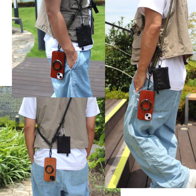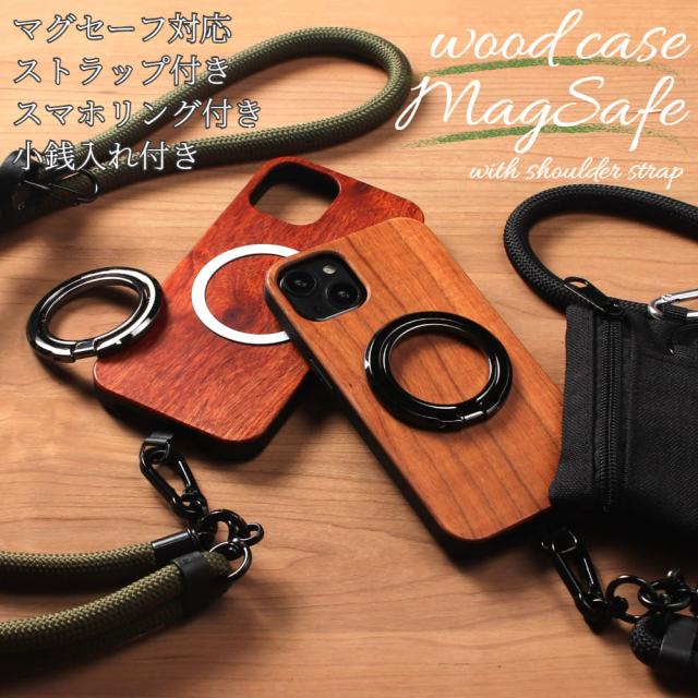 iphoneケース 木製 iphone16 iphone15 iphone14 pro 13 12 マグセーフ対応 リング付き ショルダー ストラップ 小銭入れ マグネット se3 se2 iphone11 XR Xs max 天然木 スマホケース 16 15 14 plus SE ウッド スマホリング お財布 カード収納 アイフォン アウトドア 送料無料