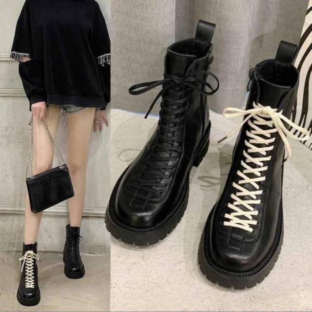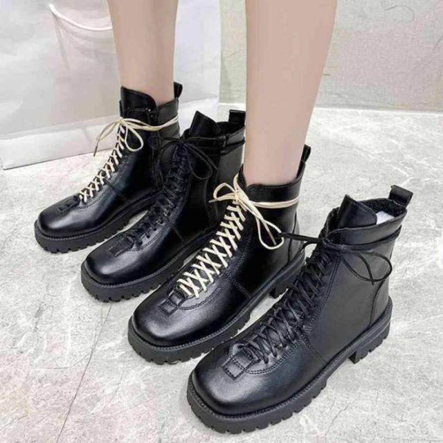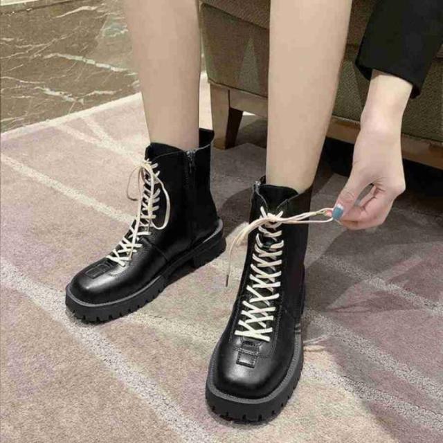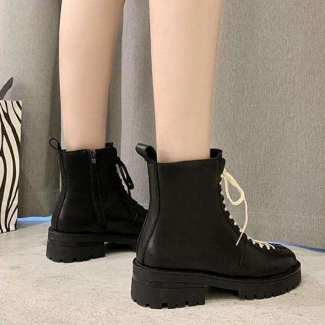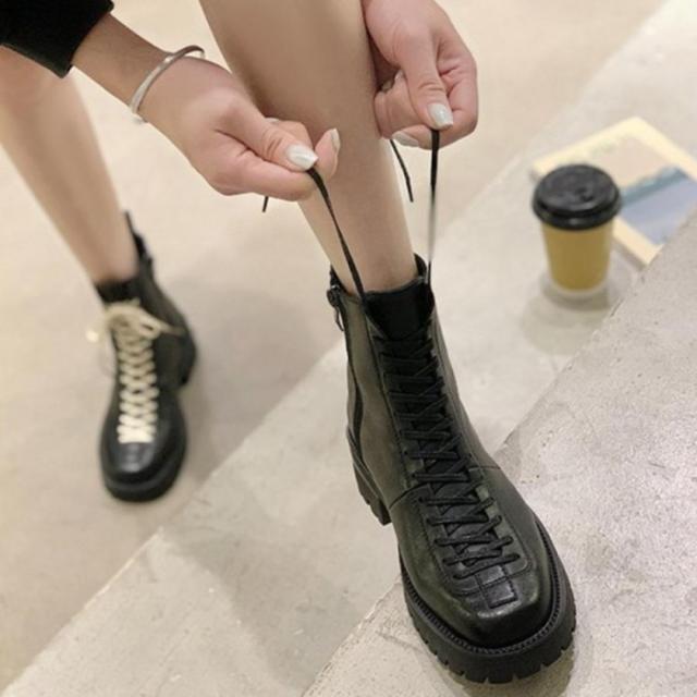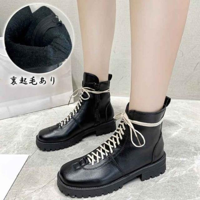 カッコいい レースアップ ブーツ 履きやすい 編み上げ 美脚ブーツ 秋冬 カジュアルショートブーツ内ボア ストリート大人