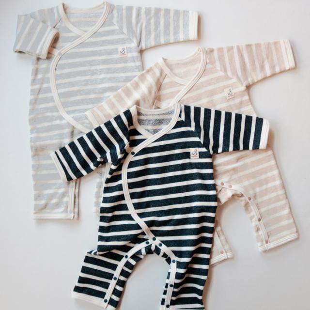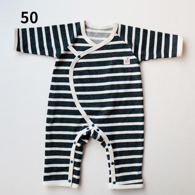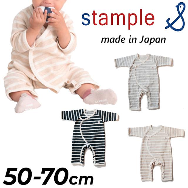 スタンプル ロンパース 長袖 50-70cm 赤ちゃん ベビー服 stample ふんわり裏毛ボーダーラップオール ベビーウェア 綿100% 日本製 つなぎ ボーダー柄 前開き カバーオール 新生児 乳幼児 男の子 女の子 子ども BABY ブランド ギフト 出産祝い アパレル/23030