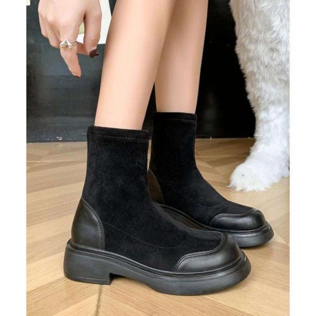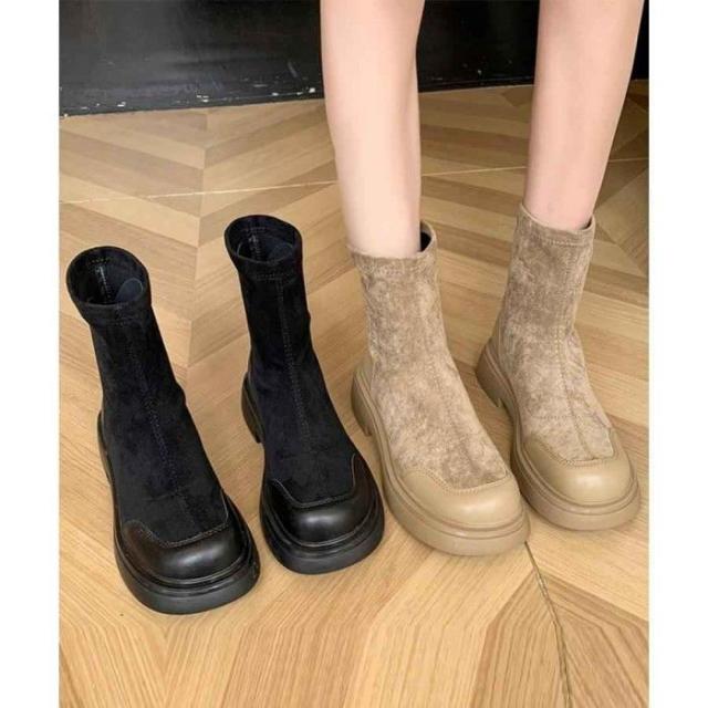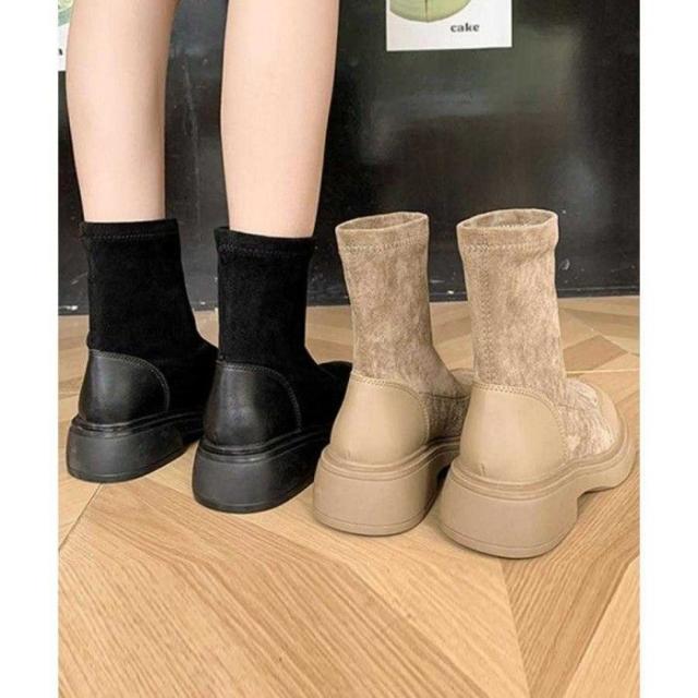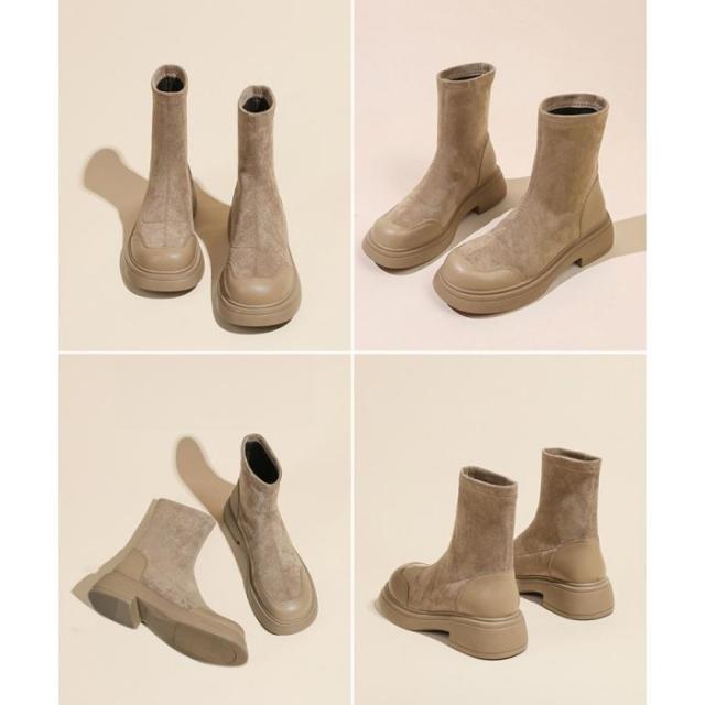 レトロ 厚底ブーツ ラウンドトゥ 美脚 ブーティ レディース 秋冬 ストレッチブーツ 韓国 歩きやすい 秋冬靴ローヒール