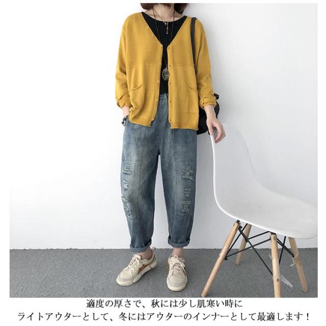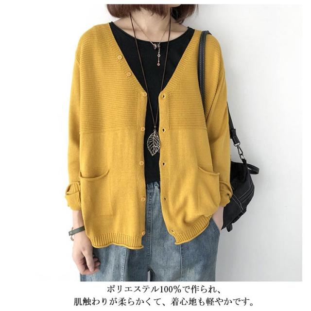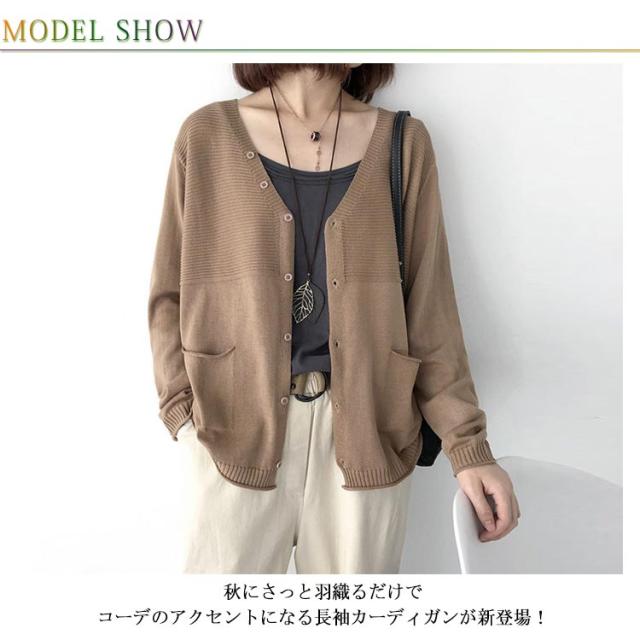 | 秋にさっと羽織るだけでコーデのアクセントになる長袖カーディガンが新登場! 首元すっきり定番デザイン ”Vネック”ころっとかわいい大きめボタンがポイント! ポリエステル100%で作られ、肌触わりが柔らかくて、着心地も軽やかです。 適度の厚さで、秋には少し肌寒い時にライトアウターとして、冬にはアウターのインナーとして最適します! シンプルな無地デザインで、スカートやジャケット、Tシャツなどと合わせやすいレディースカーディガンです。 | |