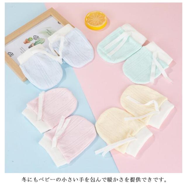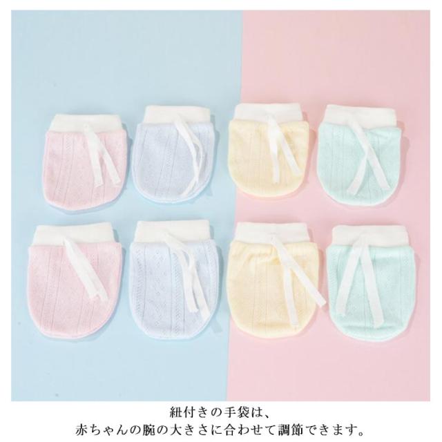 新生児 ミトン ひっかき防止 手袋 ベビーミトン 左右兼用 赤ちゃん 出産祝い ベビーミトン かきむしり防止 柔らかい 通気性 コットン 紐付き サイズ調整可能