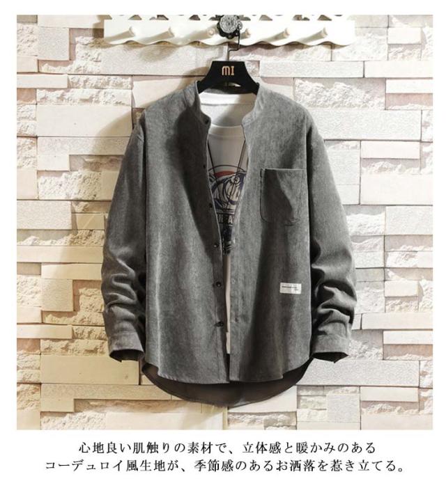 バンドカラー シャツジャケット バンドカラー 春服 シンプル 襟なし ノーカラーシャツ カジュアルシャツ 長袖 シャツ 春秋 メンズ 秋服 長袖シャツ 通勤 通学 大きサイズ 30代 40代 50代