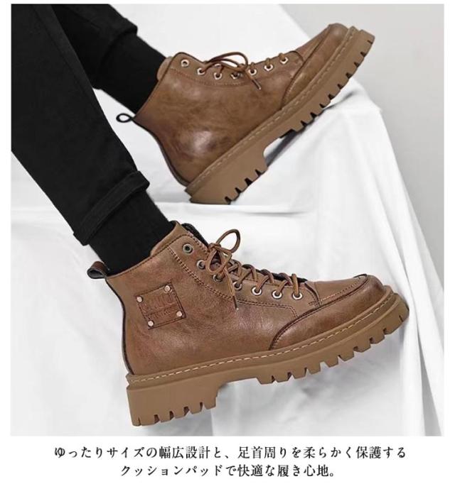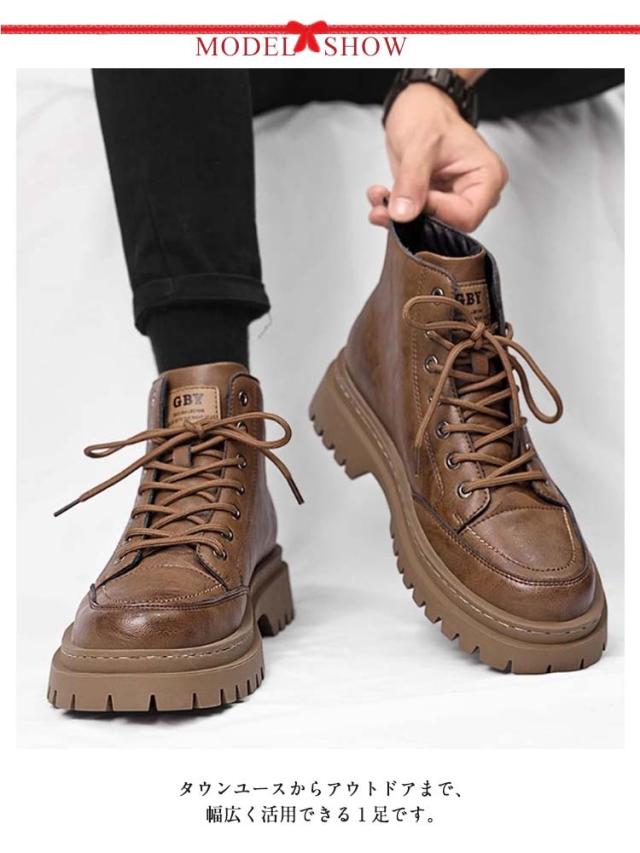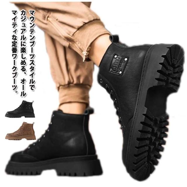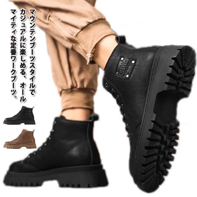 ドレープブーツ アウトドア 厚底 ワークブーツ 軽量 革靴 スニーカー メンズ マウンテンブーツ ワークシューズ エンジニアブーツ ショートブーツ 春夏秋冬 PUレザー 厚底 耐磨耗 ブーツ 厚底 防滑保温 ブーツ アウトドア キャンプ ストリート