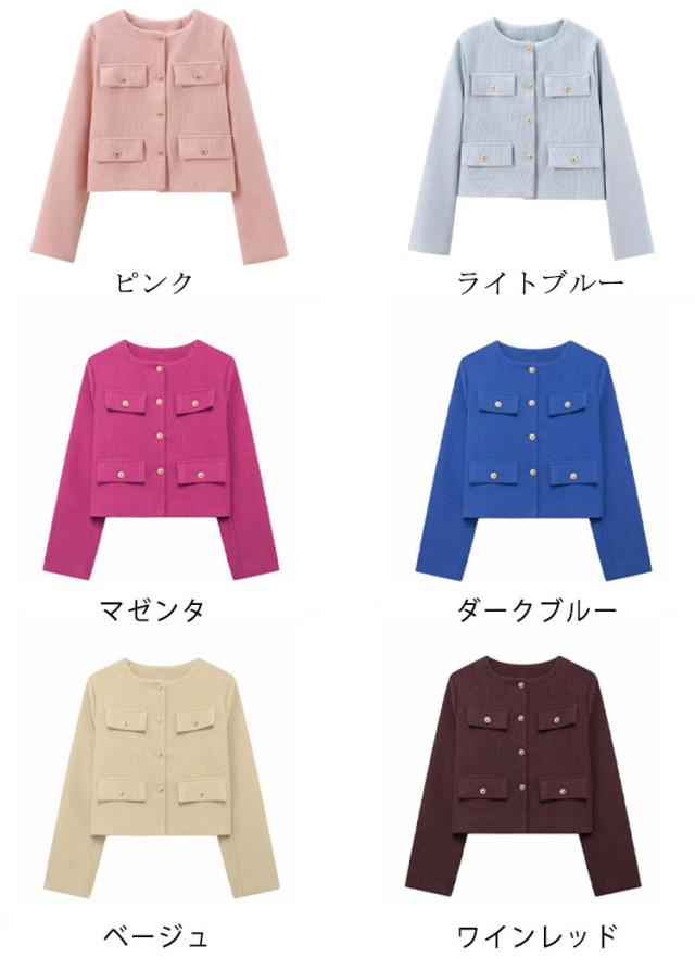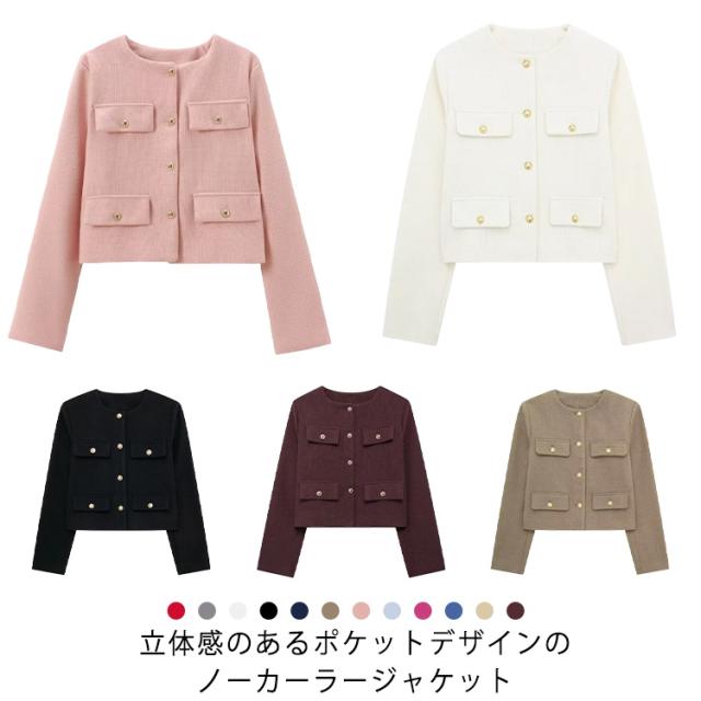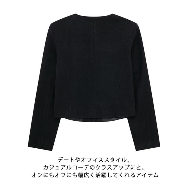 ノーカラー ノーカラー 春 母 入園式 シンプル おしゃれ スーツ ジャケット 秋 スーツジャケット ショート丈 カジュアル 着痩せ 春秋 フォーマル 通勤 OL フォーマル ノーカラージャケット 入学式 12色