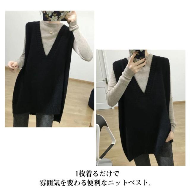 Vネック ゆったり 重ね着 ニットベスト ノースリーブ 春 体型カバー トップス ベスト レディース レイヤード 無地 Aライン ニットベスト おしゃれ カジュアル 大人 女性 秋冬 通勤 通学 オフィス 袖なし 着?せ 大きいサイズ ギフト プレゼント