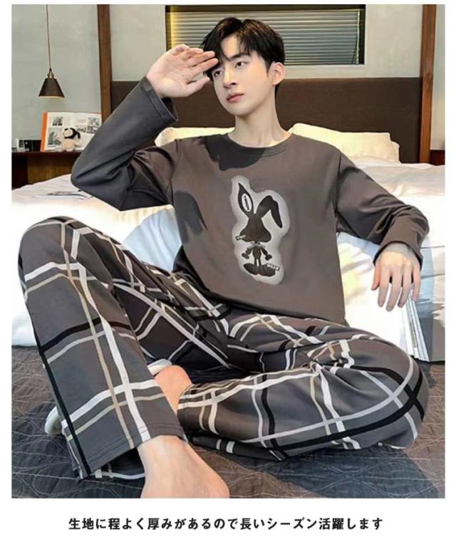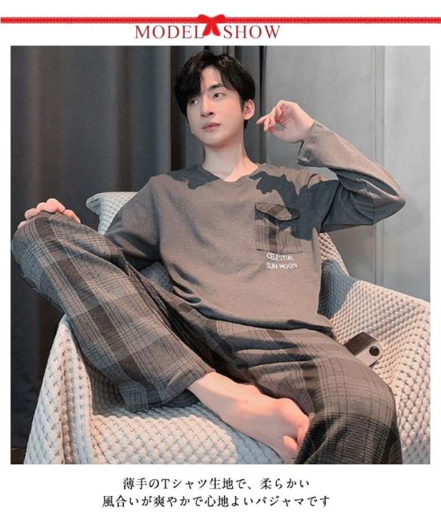 長袖Tシャツ ジュニア 上下セットアップ 薄手 大人 紳士 男性 お洒落 ルームウェア 長ズボン 長袖 パジャマ ルームウェア ロングシーズン 父の日 部屋着 春夏 秋用 薄手