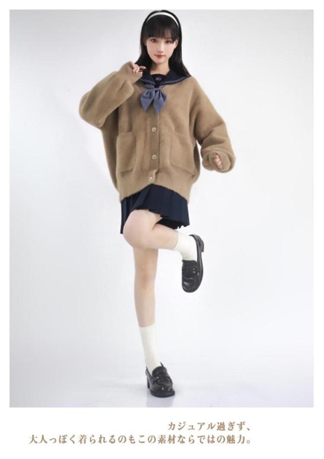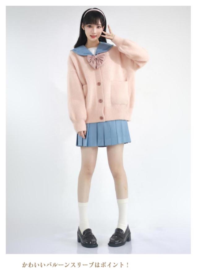 高校生 制服 カジュアル バルーンスリーブ カーディガン ニットカーディガン 中学生 カーディガン もこもこ ニット スクールセーター JK 韓国ファッション L 秋冬 S M ミンクファータッチ XL