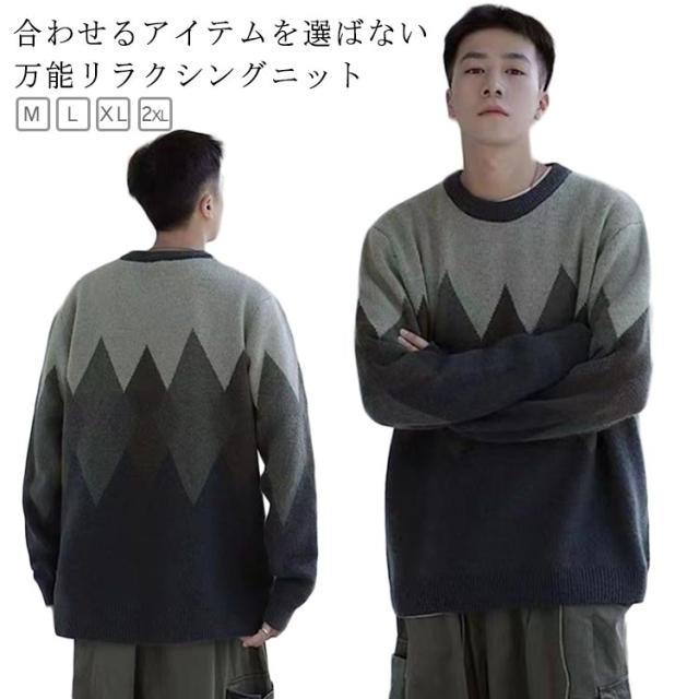 セーター セーター ニット 大学生 オーバーサイズ 秋服 メンズ 長袖 ニット オーバーサイズ ビッグシルエット メンズファッション 中学生 モックネック クルーネック 高校生 メンズ 20代 10代 韓国 秋冬 秋 冬 冬服