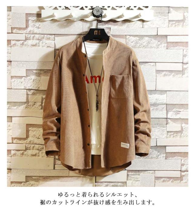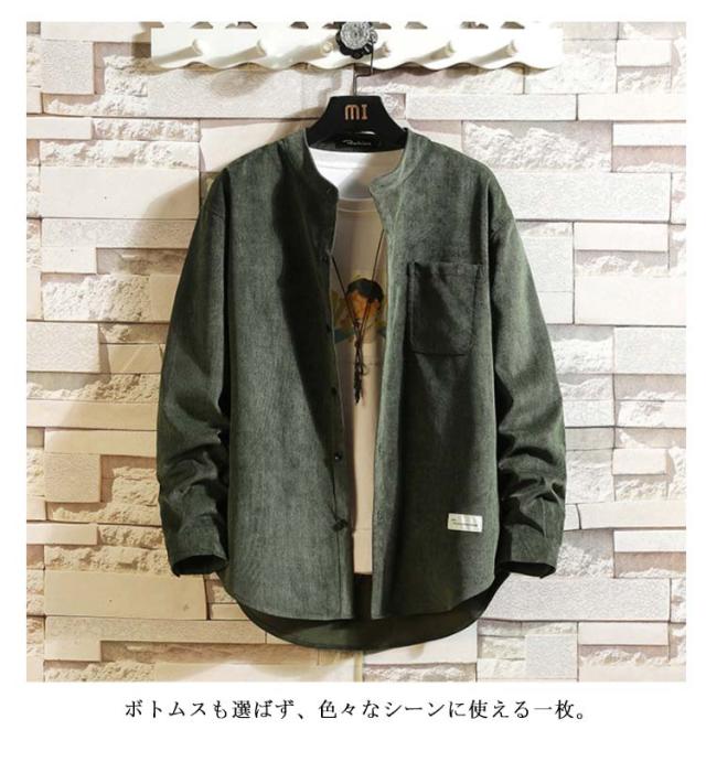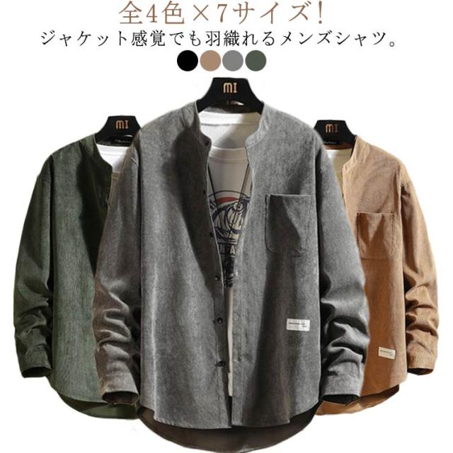 バンドカラー メンズ ノーカラーシャツ 秋服 長袖 シャツジャケット 春服 無地シャツ 長袖シャツ シャツ 春秋 襟なし バンドカラー シンプル 通勤 通学 大きサイズ 30代 40代 50代