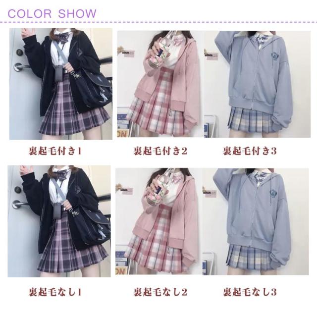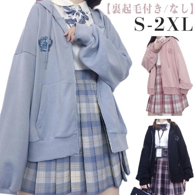 レディース スクール 学生服 ゆったり パーカー 秋服 長袖 ポケット付き 裏起毛付き パーカー カジュアル ジップアップ ジップアップパーカー 学生パーカー フードパーカー 女子高生 中学生 トップス 裏起毛なし JK おしゃれ 10代 20代 S M L XL