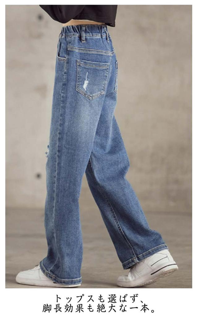 キッズ 170 キッズ ダンス ワイドパンツ 衣装 デニム 女の子 ジーンズ ウエストゴム デニムパンツ 小学生 120 130 140 150 160 110 ジュニア ダメージ加工 ロングパンツ 子供 中学生 秋服
