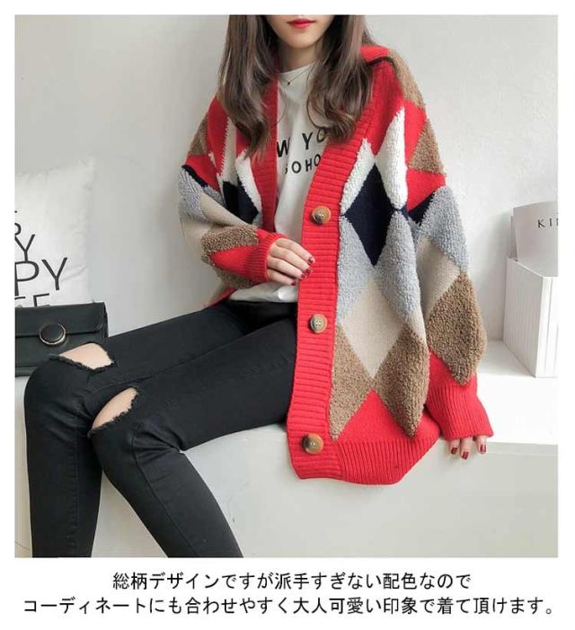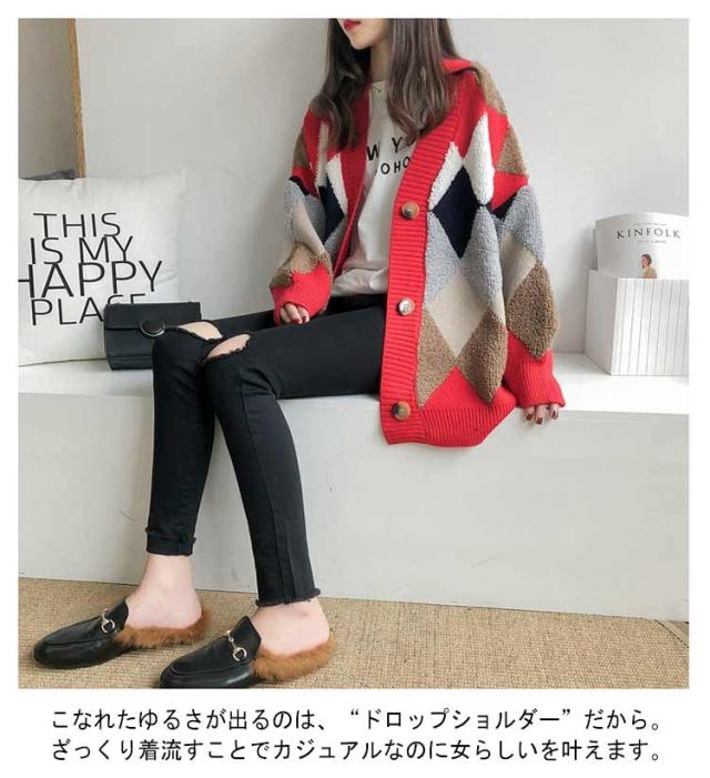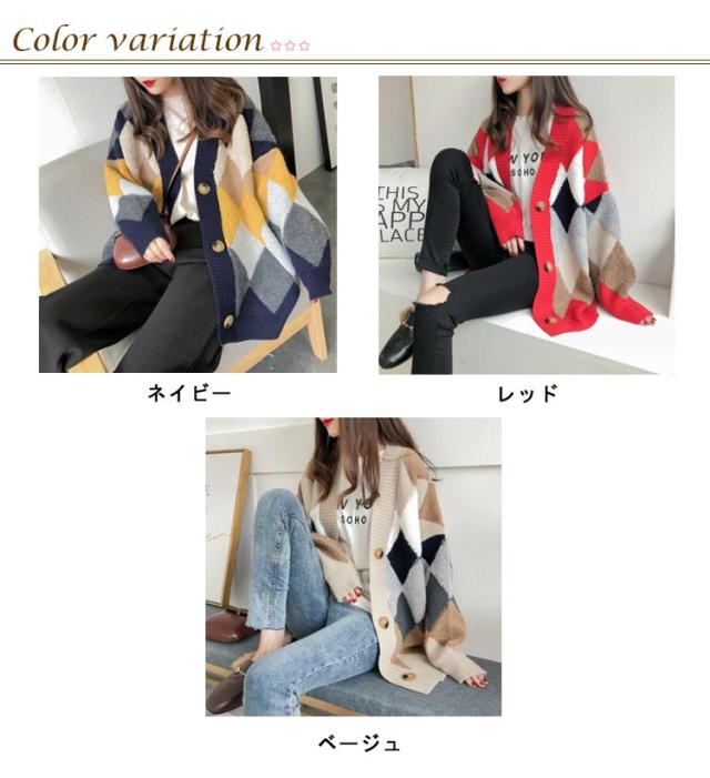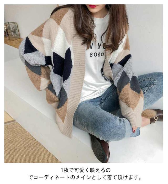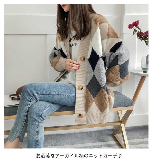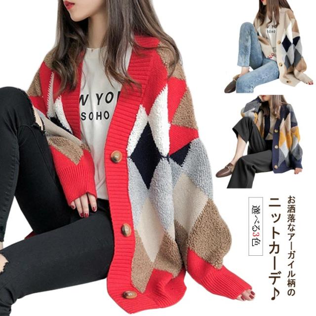 Vネック ニットカーディガン 羽織 アーガイル柄 レディース ゆったり ゆったり 長袖 体型カバー アウター ニット オフィス ドロップショルダー 通勤 フリーサイズ ボタン 大人女性 可愛い おしゃれ カジュアル ニットアウター 秋冬 春秋 トップス ギフト