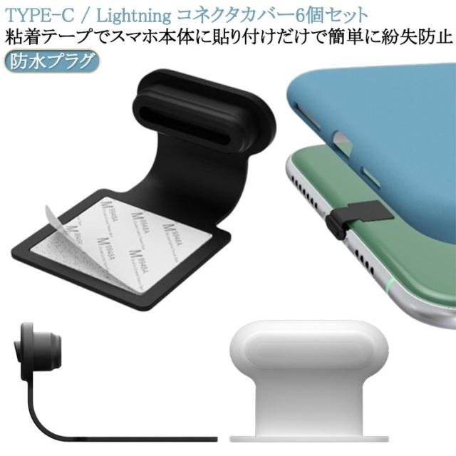 | TYPE-C / Lightning コネクタカバー6個セット 粘着テープでスマホ本体に貼り付けだけで簡単に紛失防止 | |