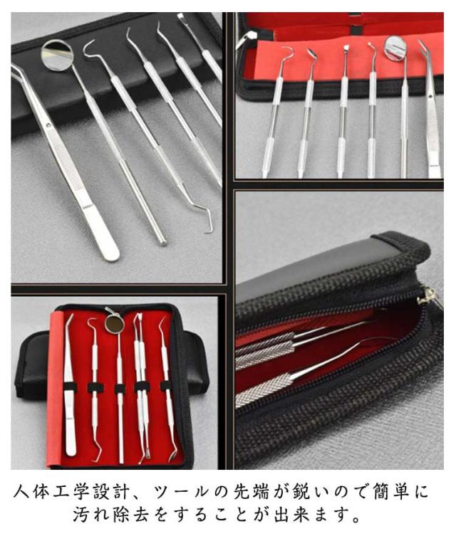 | ステンレス製歯用ツール8点セット。 食べかす、歯石、歯垢、虫歯、色素沈着に 持ち運びに便利なケース付き!保管にも便利。 人体工学設計、ツールの先端が鋭いので簡単に汚れ除去をすることが出来ます。 耐久性と防カビ性にすぐれ、滑り止め設計されているので持ちやすい。 | |