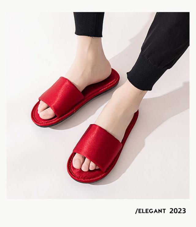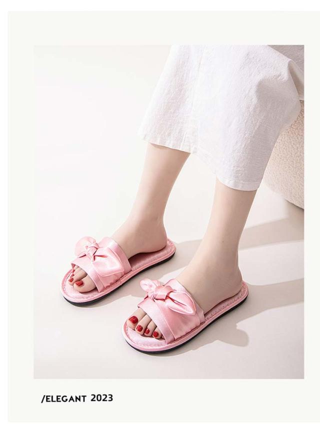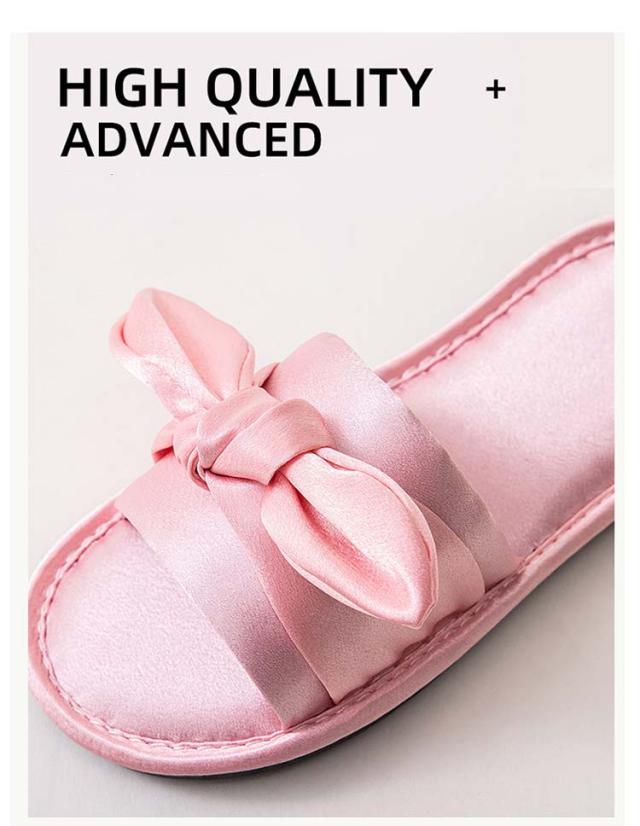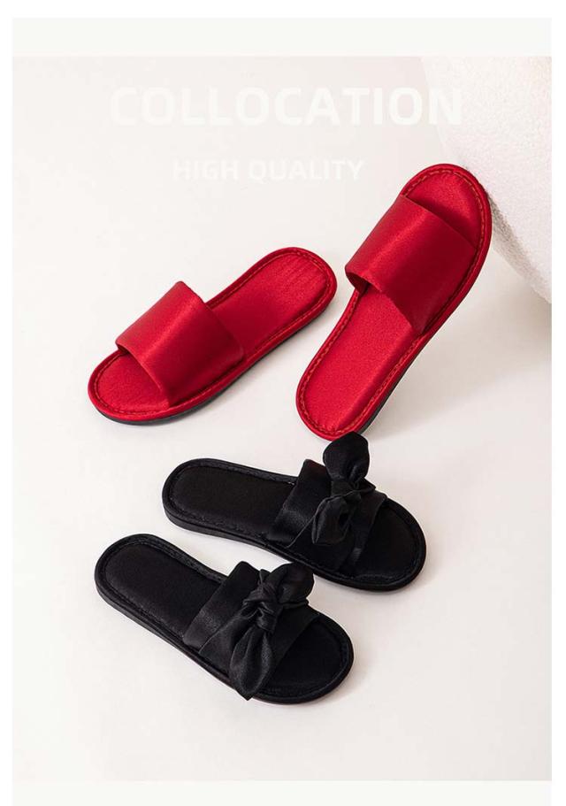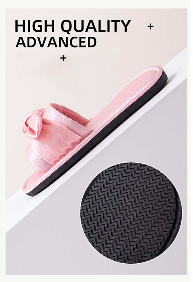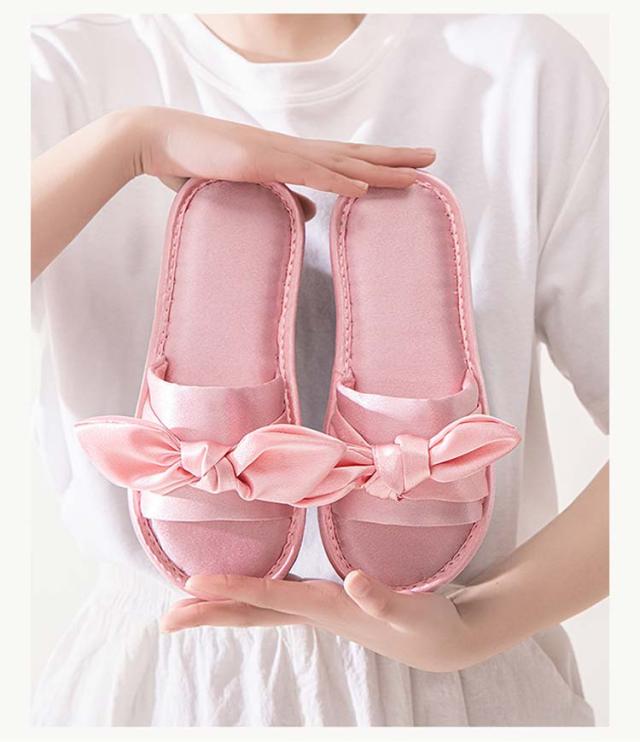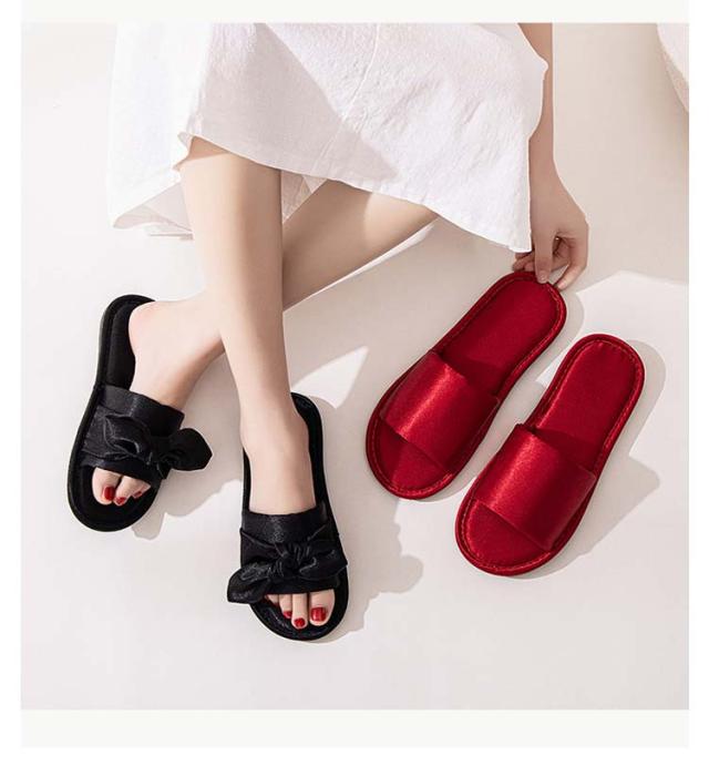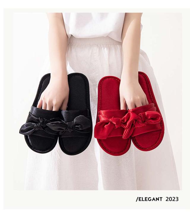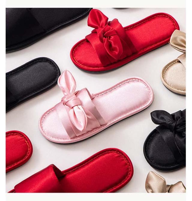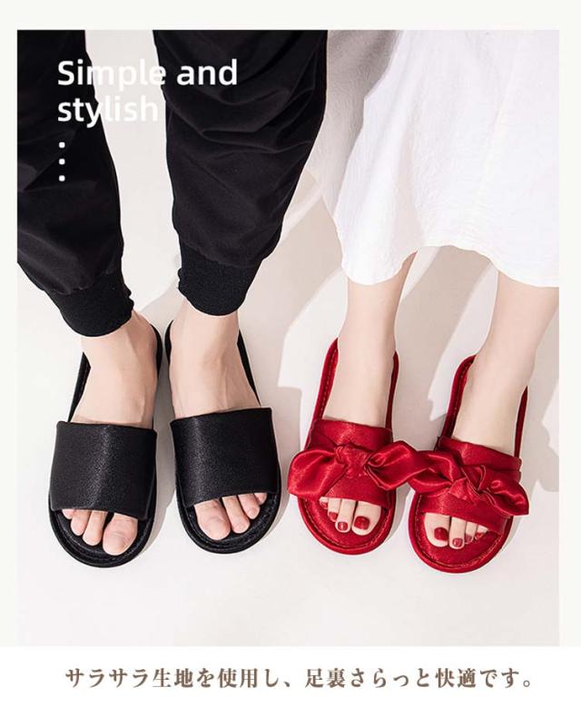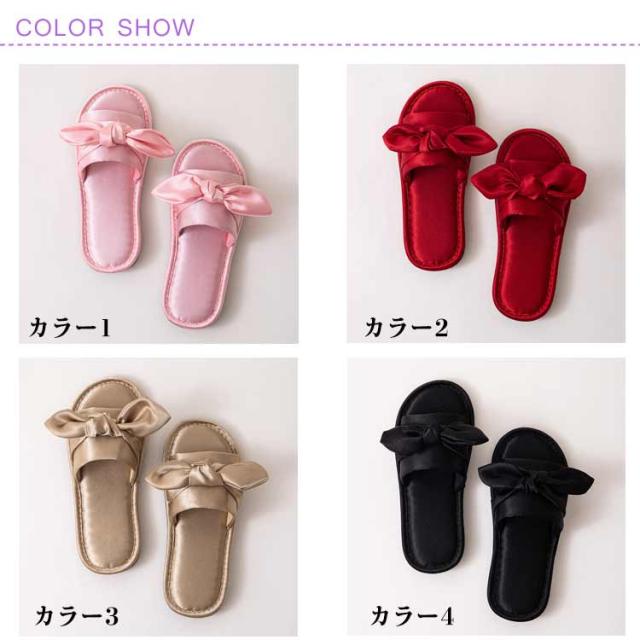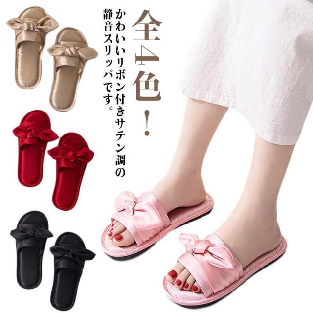 ルームシューズ ルームスリッパ リボン付き 自宅用 来客用 敬老の日 サンダル スリッパ 静音 室内 サテン調 滑り止め レディース 贈り物 ピンク レッド ブラック ゴールド