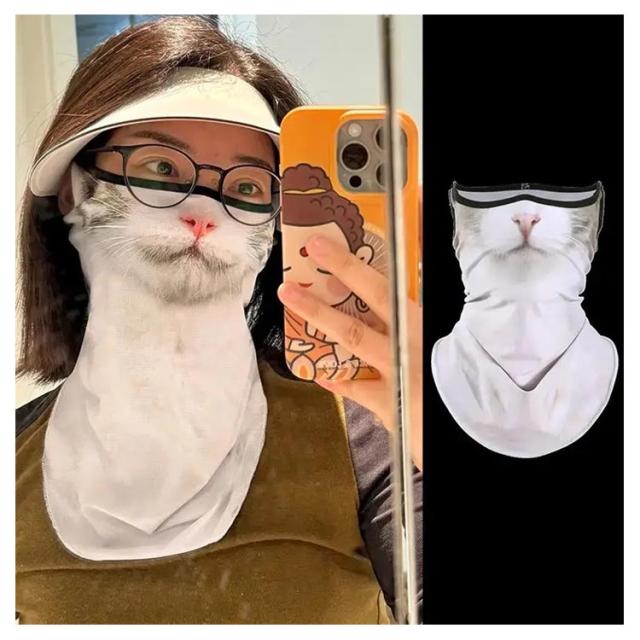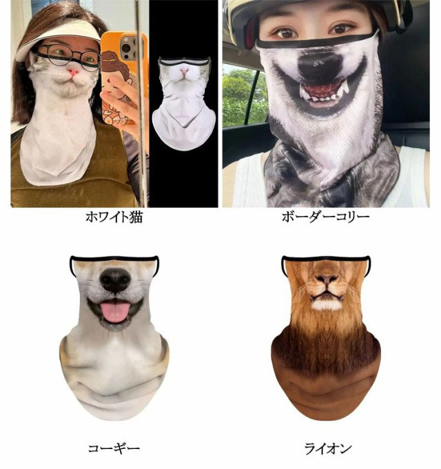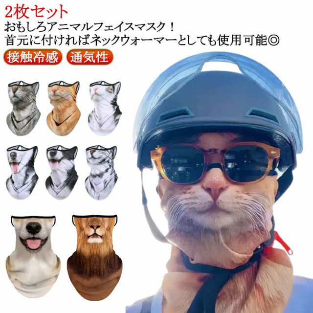 夏用 おもしろアニマルフェイスマスク ひんやり 接触冷感 マスク UVカット 動物柄 伸縮 おもしろアニマルフェイスマスク マスク 通気性 UVカット フェイス ネックガード 2枚 UVフェイスガード フェイスカバー マスク 3D プリント ネックカバー 多機能 日よけ