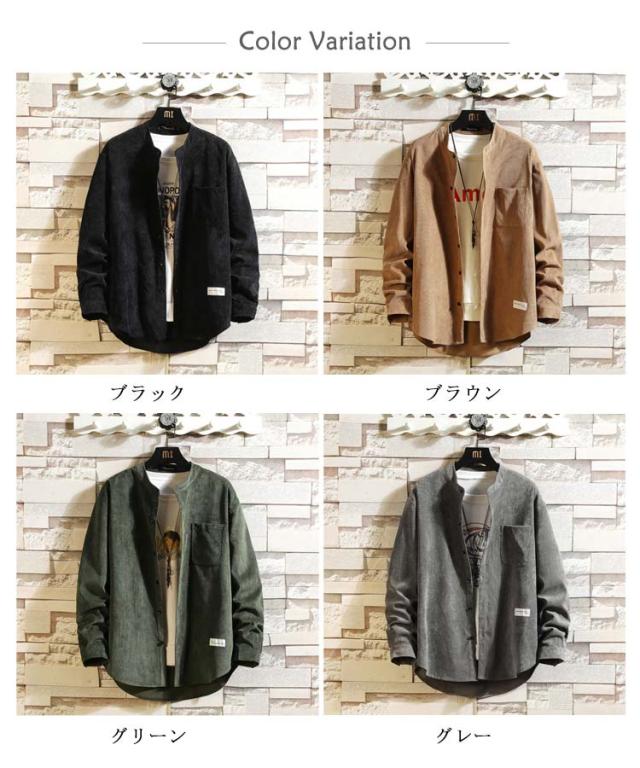 シャツジャケット バンドカラー メンズ 長袖シャツ ノーカラーシャツ 襟なし 無地シャツ カジュアルシャツ 通勤 バンドカラー シャツ 春服 秋服 シンプル 通学 長袖 大きサイズ 30代 40代 50代
