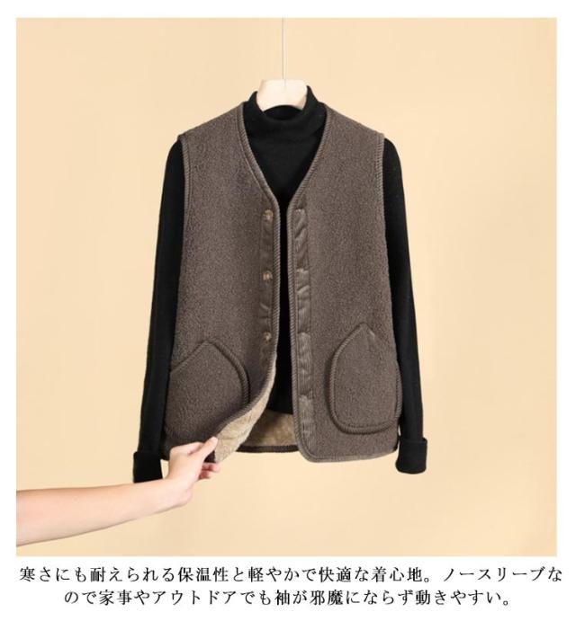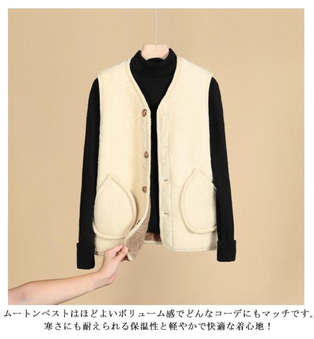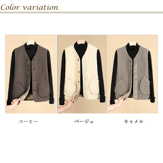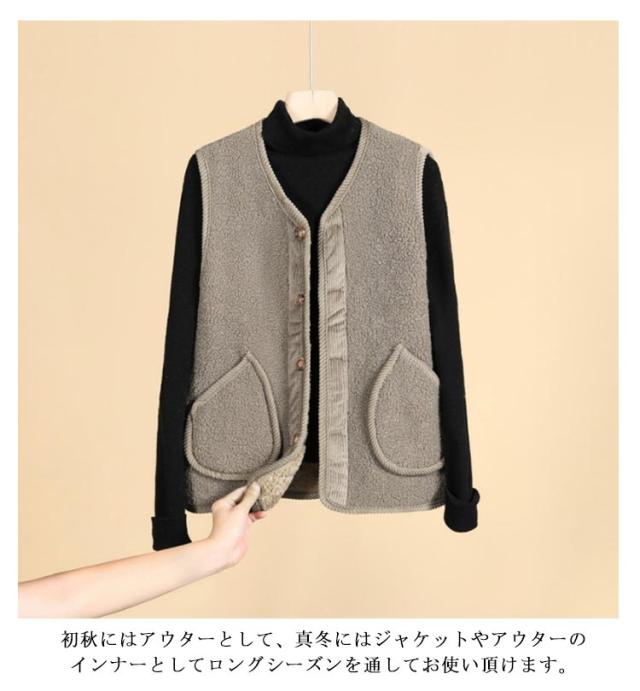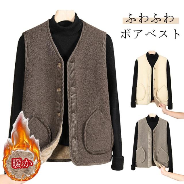 ジレ ベスト 厚手 レディース ボアベスト カーディガン もこもこ ボア アウター ボアジレ 秋冬 体型カバー 前開き あたっか 秋 冬 トップス 大きいサイズ 裏地毛 羽織り ムートン調 ノーカラー ノースリーブ おしゃれ きれいめ カジュアル
