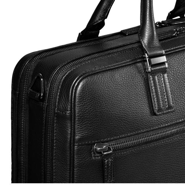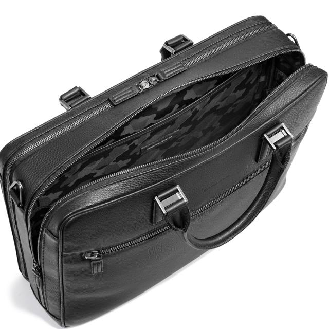 | 贅沢な手触りの本シュリンクレザーで仕立てたこのブリーフバッグは、シンプルながらも洗練されたデザインが特徴です。ハンドルとショルダーパッドにはダブルリブのディテールを取り入れ、エレガントさを一層引き立てています。使用しているYKKエクセラファスナーは、ひとつひとつ磨き上げられたエレメントが、美しさと滑らかさを追求した逸品。前ポケットには存在感のあるNo.8ファスナーを採用し、機能性とデザイン性を兼ね備えています。着脱・長さ調整可能な滑り止め付きショルダーベルトで、移動時の快適さも抜群。さらに、セットアップやスーツケースのプルドライブハンドルに固定できる機能があり、ビジネスシーンでの実用性を高めています。13.3インチノートPCやB4ファイルを収納できるサイズで、重要な書類やデバイスもスマートに持ち運び可能。小物の整理に便利なオーガナイザーポケットを備えた2気室仕様で、荷物の仕分けもスムーズです。スタイリッシュなデザインと高い機能性を兼ね備えた、このブリーフバッグは、ビジネスパーソンに最適な選択肢です。 |