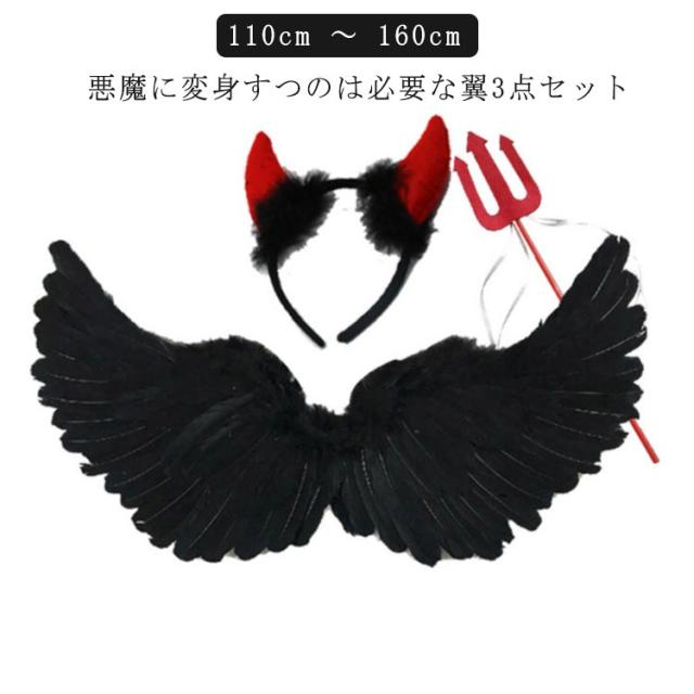 フェザー ハロウィン 小学生 110cm ハロウィン 子供 高校生 中学生 悪魔 悪魔の翼 ハロウィン 3点セット 羽根 パーティー ヘアバンド イベント コスプレ用 妖精 コスプレ コスチューム 仮装 子供 キッズ ハロウィン 120cm 130cm 140cm 150cm 160cm 変装