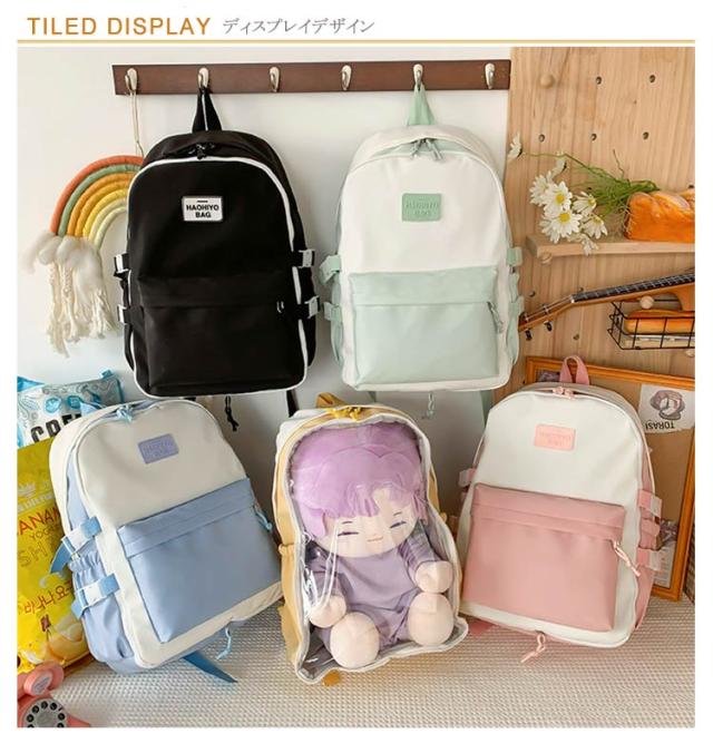 | 【透明バッグ付き】前の透明バッグが付いて、自分の好きな小物を入れることができる。好きな芸能人や、アニメの写真 、缶バッジ、ストラップ、ぬいぐるみ、キーホルダー などを入れるだけで、簡単に世界で1つたったのオリジナルバッグの完成です。 【多機能】取り外し可能な蓋が付いているため、普通のリュックとしても使用可能です。 【実用性を兼ね】このリュックは、見せる楽しさと実用性を兼ね備えたアイテムです。 【A4大容量 】 仕切りがあり、分割収納できます。A4雑誌、ipad、教科書、手帳、 ファイル、スマホ、傘、化粧品、財布、ノートパソコンなどを入れます。 【いろんなシーン】シンプルなデザインでデイリー使いはもちろん。ピクニック、散歩、通勤、 通学、旅行、修学旅行やお出かけなどに使いやす、いろいろな場合では大活躍です! | |