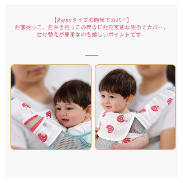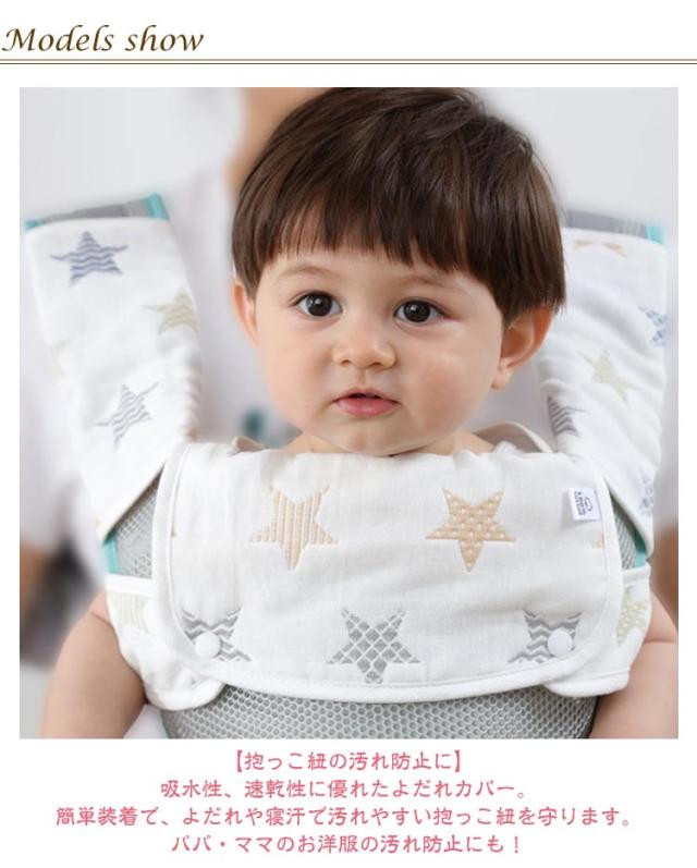 | 抱っこ紐の汚れ防止に! よだれカバー 6重ガーゼ綿 全20柄 【3点セット】 【抱っこ紐の汚れ防止に】 吸水性、速乾性に優れたよだれカバー。 簡単装着で、よだれや寝汗で汚れやすい抱っこ紐を守ります。パパ・ママのお洋服の汚れ防止にも! 【赤ちゃんのお肌に優しい綿】 赤ちゃんのお肌やお口に触れるものだから、天然素材100%が安心。 優しい肌触りでお肌が敏感な赤ちゃんにも安心です。 【2wayタイプの胸当てカバー】 対面抱っこ、前向き抱っこの両方に対応可能な胸当てカバー。 付け替えが簡単なのも嬉しいポイントです。 【スナップボタンで簡単着脱。長さ調整も可能】 簡単に留められて外れにくいスナップボタン。お肌にあたってもマジックテープのように傷つけてしまう心配もありません◎ボタン位置を変えて長さ調整も可能です。 【多くの抱っこ紐に対応】 ベルト幅が8cm以上あれば使用可能な汎用タイプ。 実際に多くのブランドの抱っこ紐で使用されているので安心です。 | |