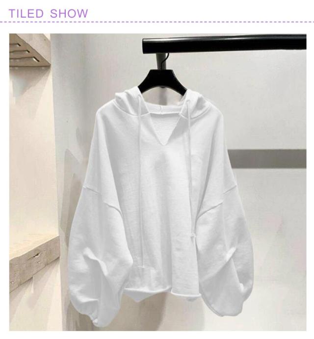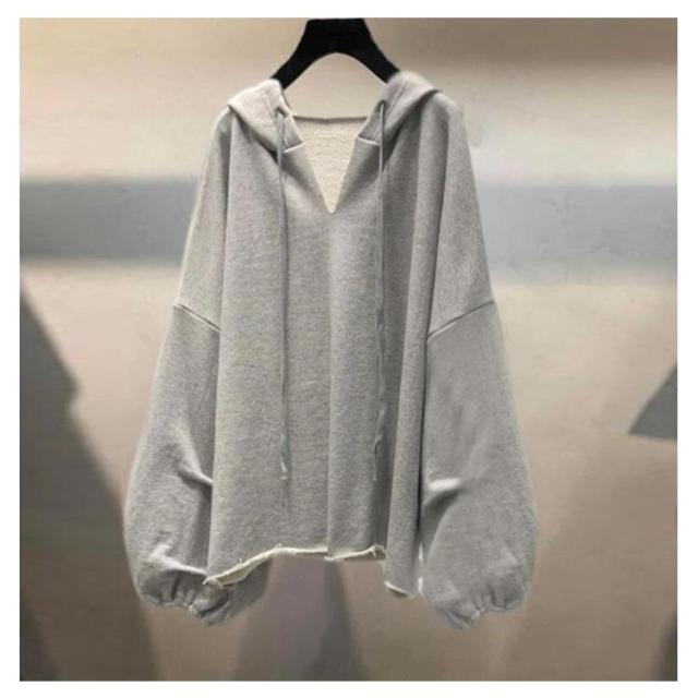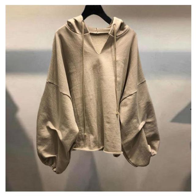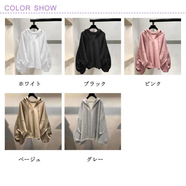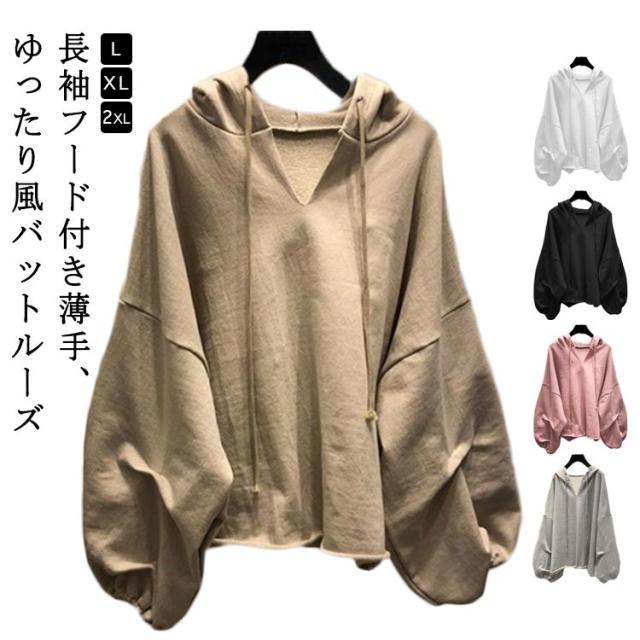 長袖 パーカー トップス Vネック レディース ドルマンスリーブ プルオーバー パーカー フード付き シンプル パーカー ボリューム袖 フード付き トップス