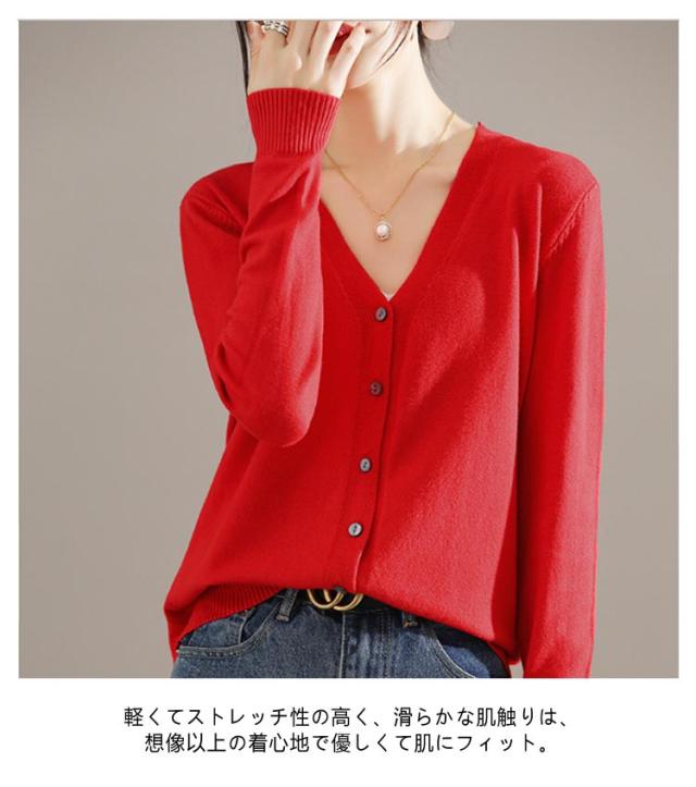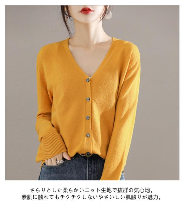 | 着回し力抜群vネックのレディース 長袖 カーディガン! シンプルでデイリーに着回せる。一枚は絶対に欲しいに使えるニットセーター たっぷり、ふんわりとしたニットトップス 秋冬コーデに一枚!使い勝手抜群 しっかり薄手過ぎない厚みで冷えやすいオフィスでも大活躍! 今季、絶対欲しいのは「ゆるっ」としたルーズな印象に。 見た目以上に軽量で、重たくならずにスッキリと着られるアイテムです。 パンツやスカートを選ばず、更に合わせやすい! さらりとした柔らかいニット生地で抜群の気心地。素肌に触れてもチクチクしないやさいしい肌触りが魅力。 リプ編みで仕上げたニット 程良い厚みのニット。 軽くてストレッチ性の高く、滑らかな肌触りは、想像以上の着心地で優しくて肌にフィット。 ふんわり優しい触り心地で肌にも負担をかけません。 女性の美しいラインを十分に引き出すうえ、デコルテラインもすっきりとキレイに見せてくれます 折りたためる柔らか素材なのでコンパクトサイズにできて持ち運びに便利! | |
