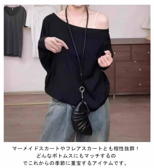 長袖 Tシャツ オフショル オフショル シンプル tシャツ ワンショル オフショルダー オフショル カットソー 春 秋 冬 ゆったり 無地 フェミニン カジュアル トップス おしゃれ 体型カバー 韓国 ファッション
