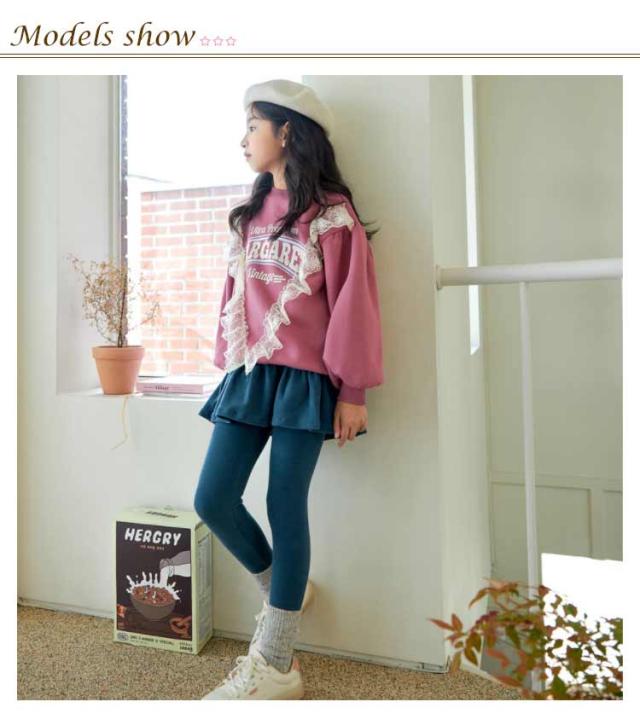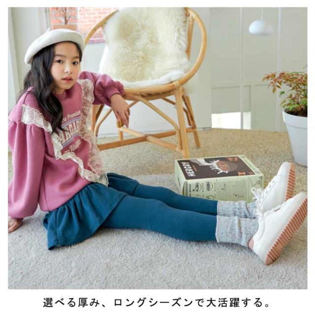 | ママ安心のレギンス+フリルスカート一体型 あったか裏起毛で寒い季節も可愛くおしゃれに過ごせます♪ 綿混素材だからチクチク感が少なくて履き心地GOOD! 選べる厚み、ロングシーズンで大活躍する。 通園や通学にはもちろん、お出かけ着としても使える万能アイテムです。 | |