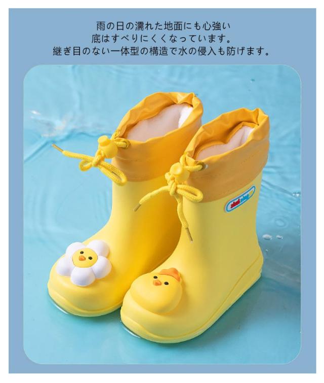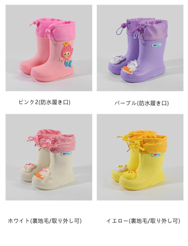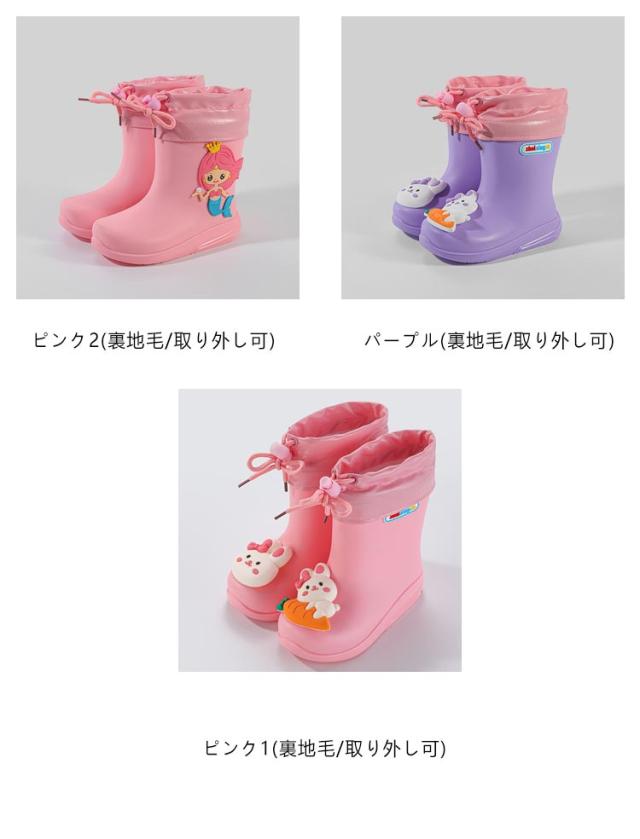 | 防水履き口/裏地毛タイプあり 裏地取り外し可能 キッズ用レインブーツ 15-20cm ■男の子も女の子もお洒落に履けるシンプルなレインシューズです! 履き口はループ付きで、小さいお子様も履きやすいデザインが◎ カラーバリエーション豊富なので、お気に入りの一足を見つけて下さい♪ ■フードが絞れる しぼれるフード付きだから雨や雪の侵入を防げちゃいます。 またフード部分は柔らかくソフトな足あたりでお子様も大満足です! ■ゴムより軽いPVC素材 履き口は柔らかいPU素材で縫製されていて、足が擦れて痛くなることがありません。 元気なお子様にピッタリです♪ ■雨の日の濡れた地面にも心強い♪ 底はすべりにくくなっています。継ぎ目のない一体型の構造で水の侵入も防げます。 ■大きな履き口 大きい履き口で脱ぎ履きラクラク。素材も柔らかく、お子さまの動きにフィットしやすい。 興味津々なお子さまにうれしい、雨の日がぐんと楽しくなるキッズレインブーツ! | |