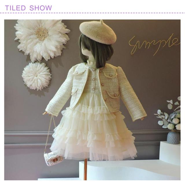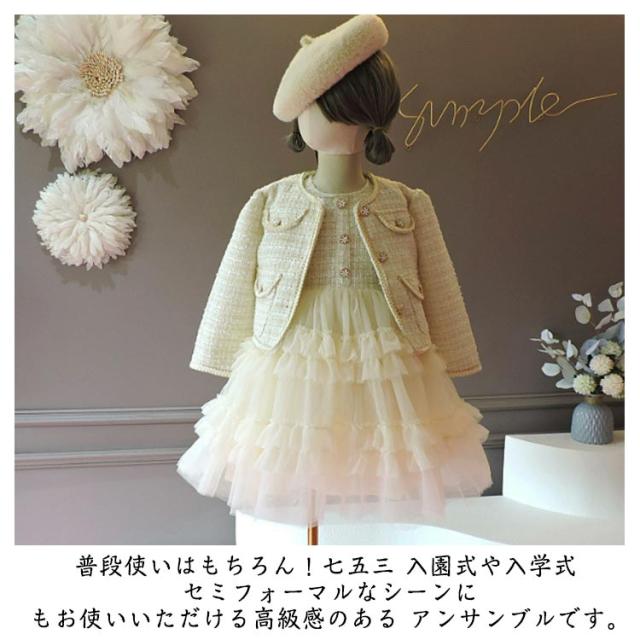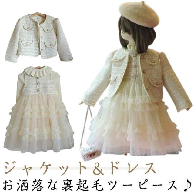 | ジャケット&ドレス お洒落な裏起毛ツーピース♪ 普段使いはもちろん! 七五三 入園式や入学式 セミフォーマルなシーンにもお使いいただける 高級感のある アンサンブルです。 ワンピースとジャケットの2点セット! 単品使いもできてとっても便利です^^ ワンピースは高級感のあるしっかりとしたツイード生地なので 入園式や入学式、結婚式など、大切なシーンや 冠婚葬祭 喪服にもご利用いただけます。 | |