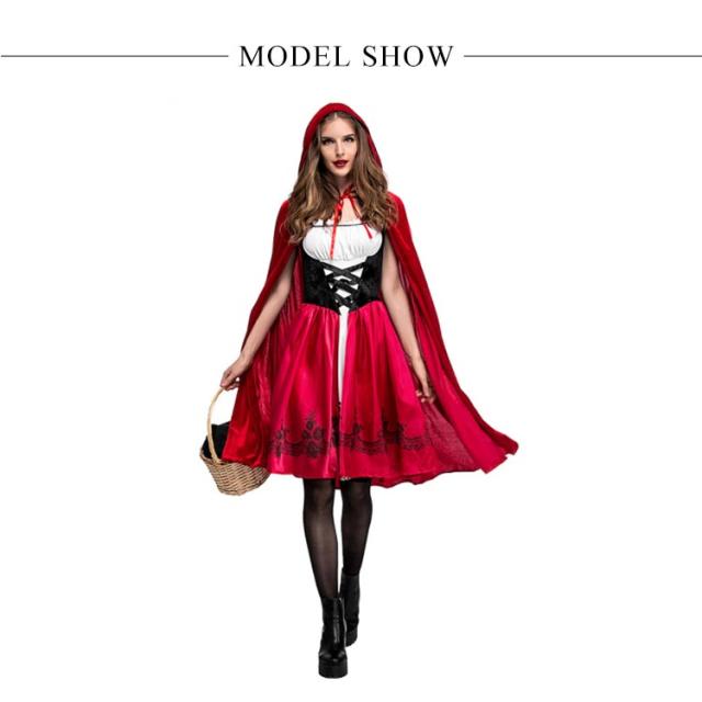 | ダークな印象を醸し出す赤ずきん衣装の登場! 中世のドレスのようなクラシカルな雰囲気が可愛い。コルセット風の装飾やマントなどのデザインは高級感があります。 短すぎないスカート丈がこだわり。全体のシルエットがガーリーに見えるようこだわりました。 鮮やかな色合いの衣装でお手軽にクオリティーの高い本格的な赤ずきんのコスプレをすることが出来ます。 テーマパークやハロウィン、コスプレ、仮装パーティにはもちろん、結婚式の余興やイベントなどにも使えます! | |