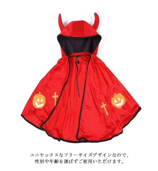 | 可愛い小悪魔に変身!本格的な仮装じゃなくても羽織るだけのハロウィンマント。 悪魔のツノが付いたフード一体型。手軽にハロウィン気分になれます。デビル風のプチコスプレにもおすすめです。 女の子だけじゃなく男の子にも適用 シンプルなデザインなので性別を問わずご利用できます。 ユニセックスなフリーサイズデザインなので、性別や年齢を選ばずご使用いただけます。 ハロウィンパーティーを盛り上げてくれること間違いなしの一品です♪ | |