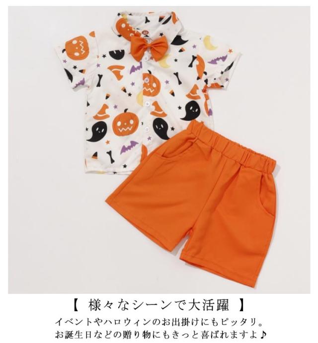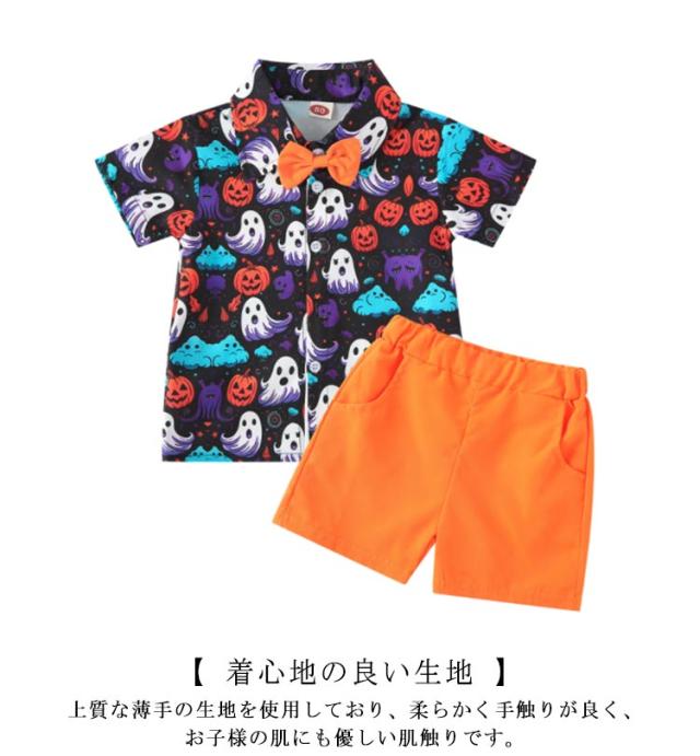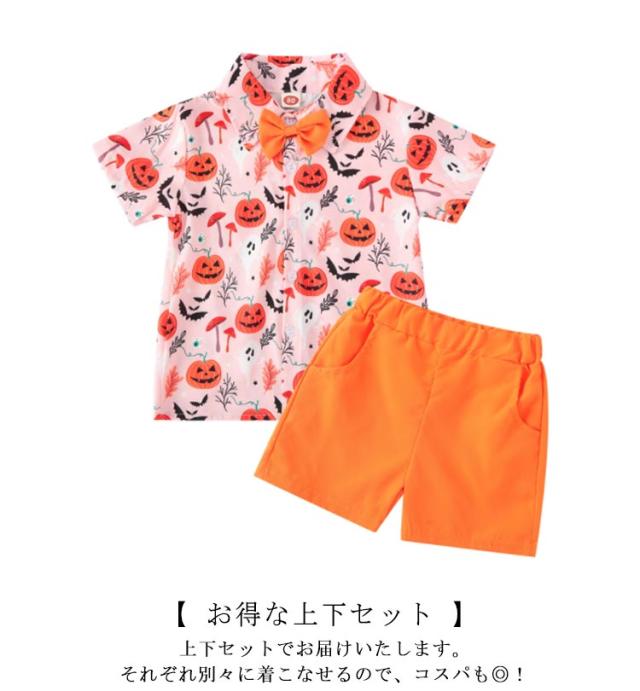 仮装 上下セット 仮装セット コスプレ 衣装 ハーフパンツ ハロウィン 男の子 子どもキッズ シャツ 小学生 かぼちゃ 子供 変装 洋服 幽霊 妖怪 半袖 幼児 コスチューム ハロウィン 月齢 フォト 普段着 子供服 かわいい