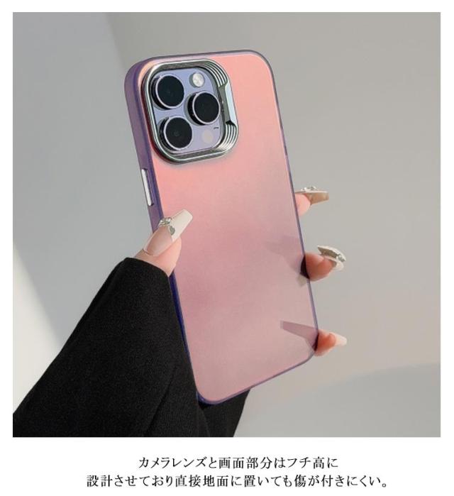 | 角度によって表情が変わるオーロラカラーのiPhoneケース。 カメラレンズと画面部分はフチ高に設計させており直接地面に置いても傷が付きにくい。 PC素材の優れた耐衝撃性でスマホをしっかり保護。 | |