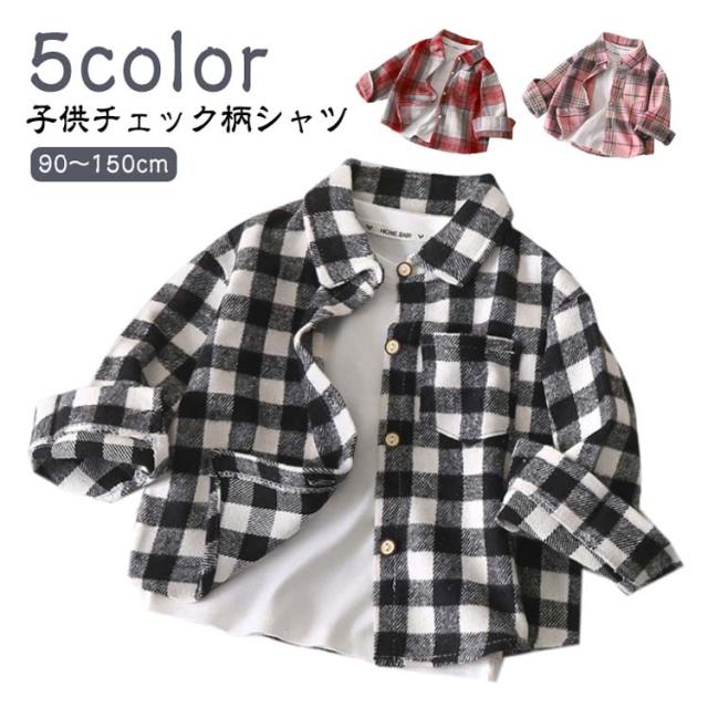 カジュアルシャツ 長袖ネルシャツ キッズ シンプル 女の子 男の子 トップス チェック柄 前開き ブラウス 子供服 羽織 おしゃれ 通学 通園 チェックシャツ 秋服 ジュニア 秋物 チェック柄 90 100 110 120 130 140