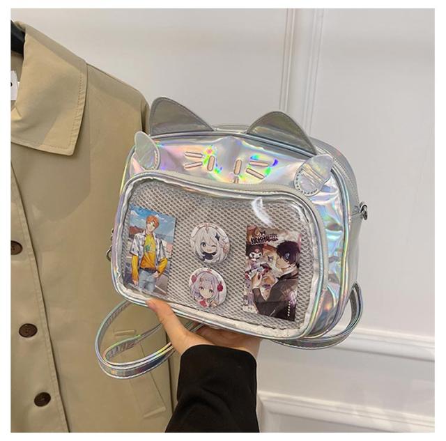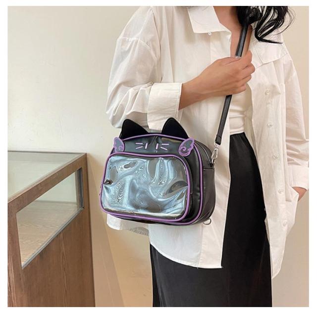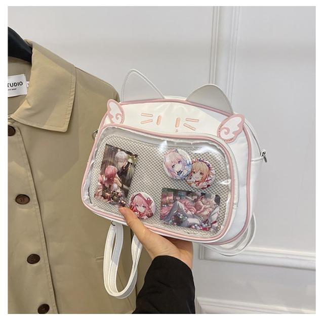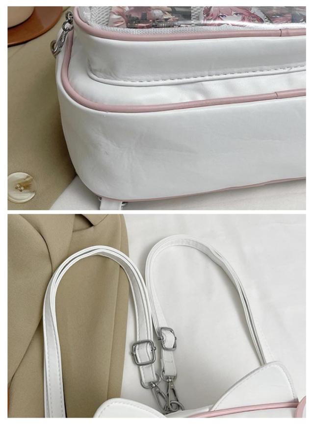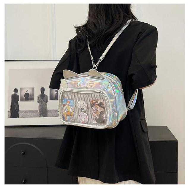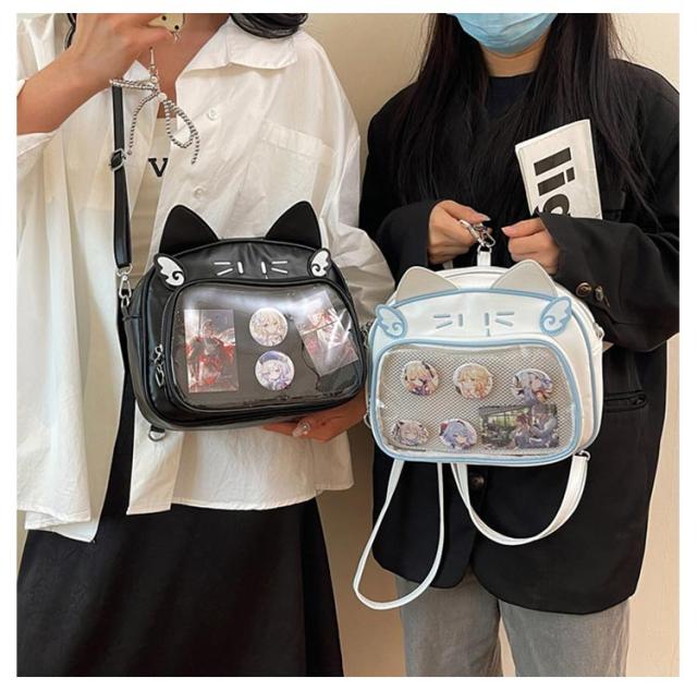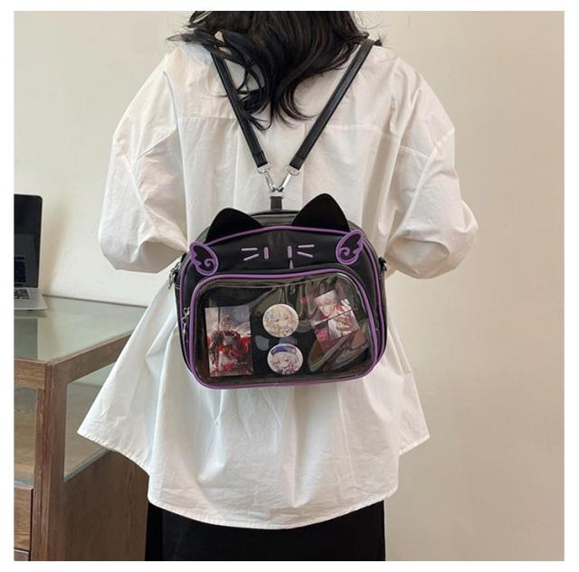 ぬいぐるみ 女子 リュック 痛バッグ ビニールバッグ リュック 3way 痛バッグ 鞄 ショルダーバッグ レザー調 猫耳 可愛い ガールズ リュック 痛バッグ レディース メンズ 男女兼用 缶バッチ 男子 大容量 ヲタバ 痛バ クリアバッグ 透明バッグ 見せバッグ