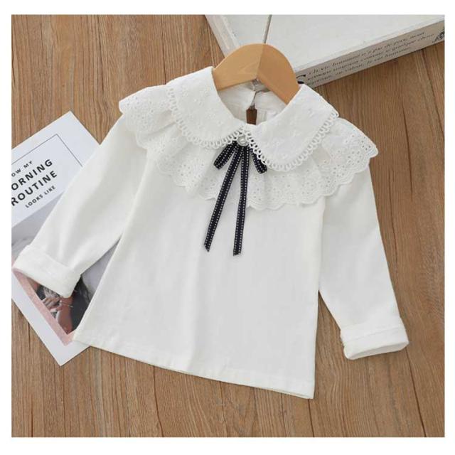 120 女の子 フリル キッズ レース 子供 フォーマル リボン 入学式 ブラウス ガールズ ホワイト 白ブラウス 綿 シャツブラウス かわいい 丸襟 卒業式 七五三 結婚式 子供服 通学 子ども 女の子 春夏秋冬 80 100 通園 110 90 130 140 150 160cm