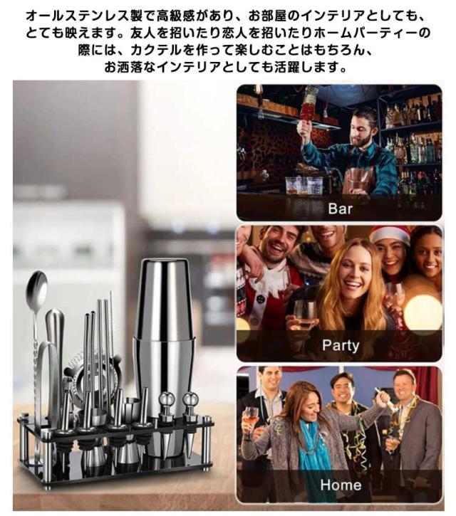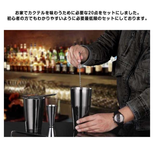 カクテルシェーカー 20点セット 初心者用 道具 セット 550ml 750ml カクテル カクテル ステンレス製 カクテルシェーカー バーテンダー セット バーセット 業務 自宅用 プレゼント