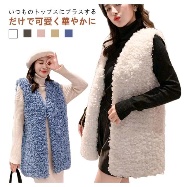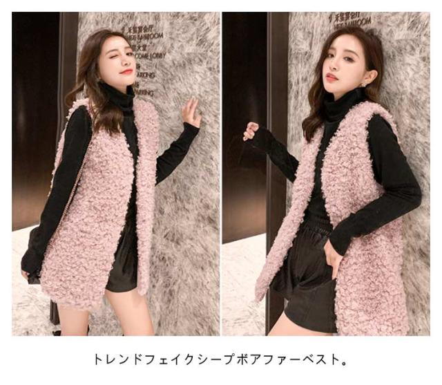 ファーベスト ベスト レディース フェイクシープボアファー ロングベスト ミドル丈 ファーロングジレ ベスト ジレ ボアベスト ボア ファーベスト もこもこ ングファーベスト 大人可愛い 秋服 秋冬 ロングボアベスト