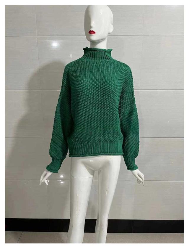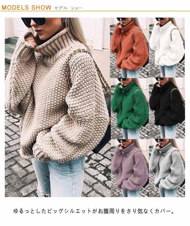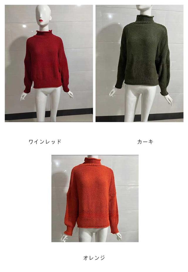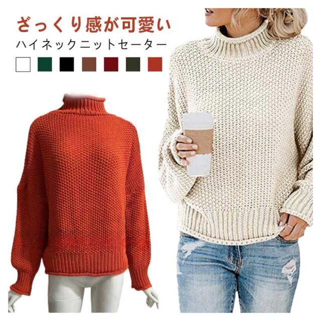 ざっくり編み オーバーサイズ トップス 大きいサイズ ハイネック ローゲージ タートルネック セーター 長袖 体型カバー ニット レディース 秋 冬 ハイネック ドロップショルダー