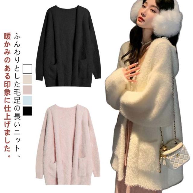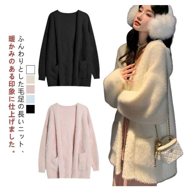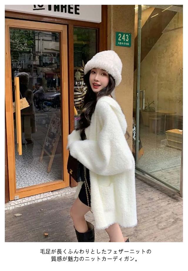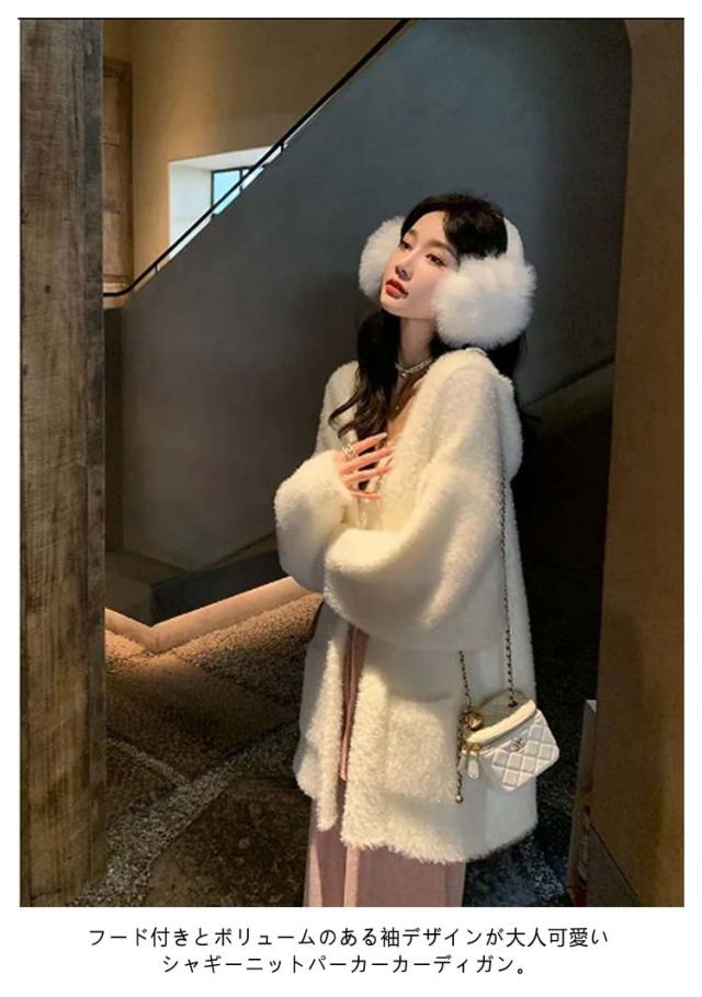 羽織り シャギーニットカーディガン フード付き レディース ニットパーカー ニットカーディガン パーカーカーデ アウター シャギーカーディガン フーディー 長袖 オーバーサイズフェザーニットカーディガン フェザーニット