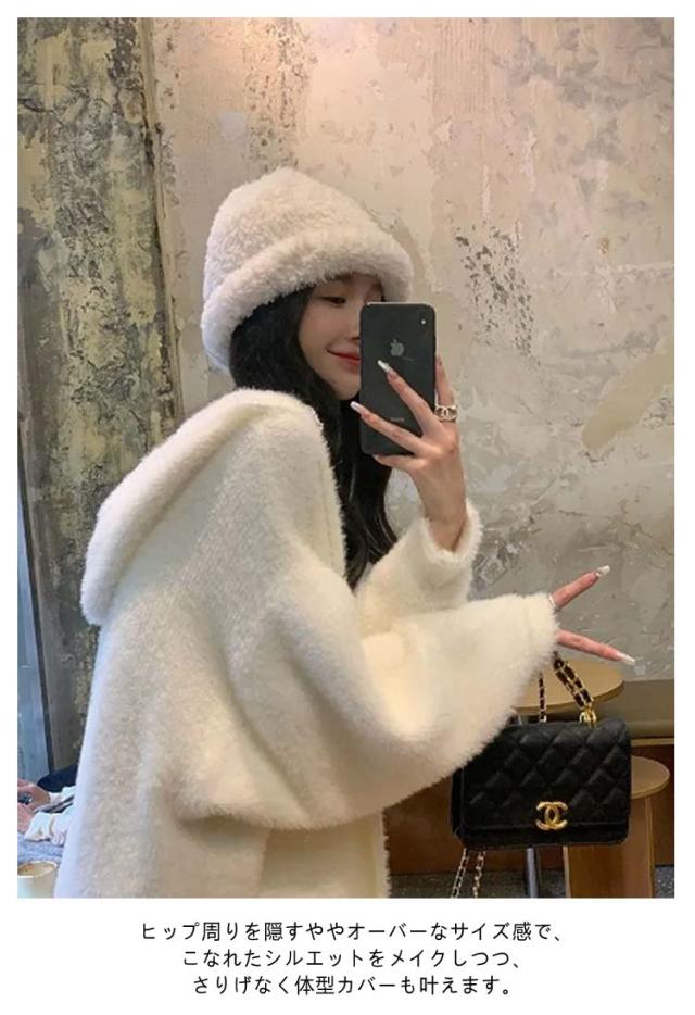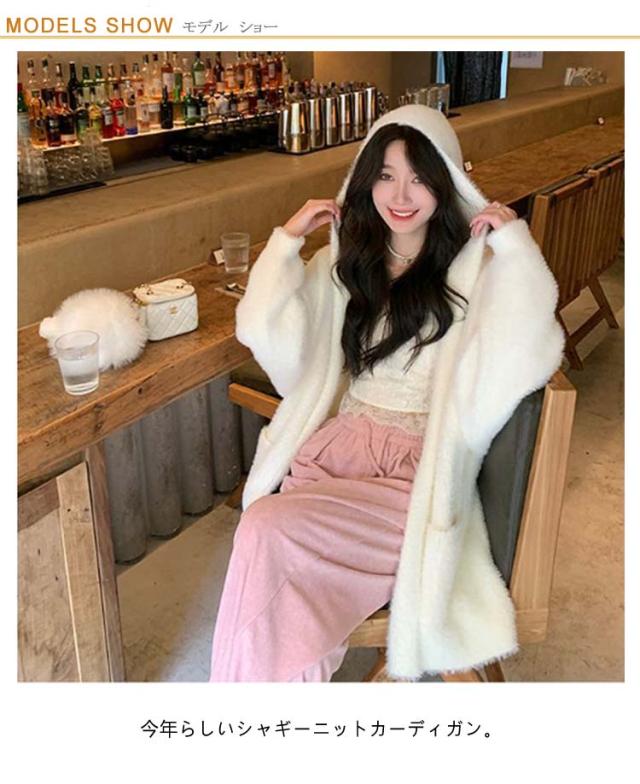 | 今年らしいシャギーニットカーディガン。 毛足が長くふんわりとしたフェザーニットの質感が魅力のニットカーディガン。 フード付きとボリュームのある袖デザインが大人可愛いシャギーニットパーカーカーディガン。 ふんわりとした毛足の長いニット、暖かみのある印象に仕上げました。 ヒップ周りを隠すややオーバーなサイズ感で、こなれたシルエットをメイクしつつ、さりげなく体型カバーも叶えます。 | |
