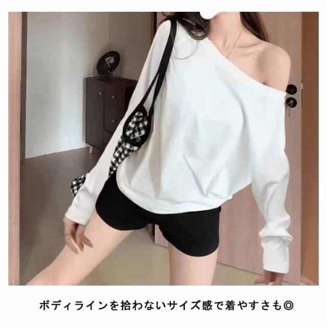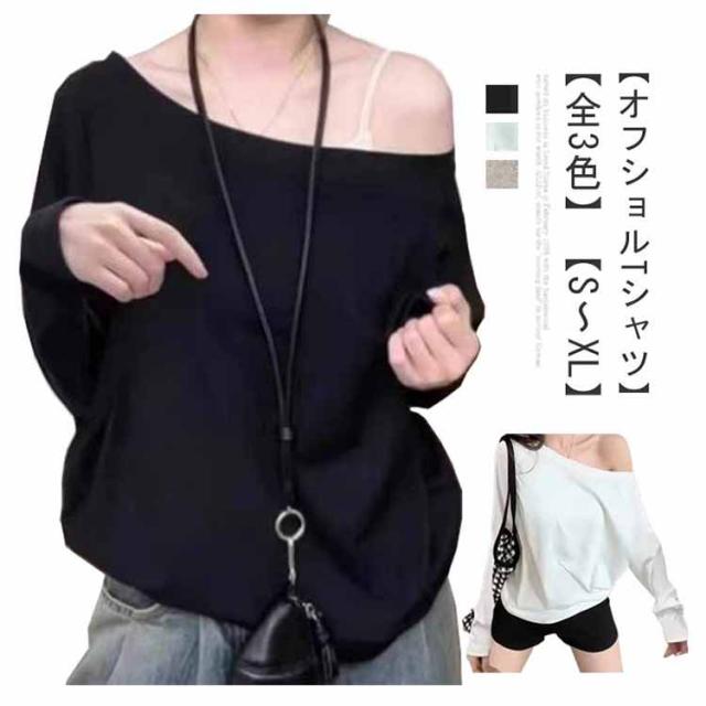 シンプル オフショル Tシャツ 春 オフショルダー tシャツ トップス レディース オフショル カットソー ワンショル 秋 冬 ゆったり 無地 フェミニン 長袖 カジュアル オフショル 体型カバー 韓国 ファッション