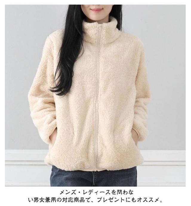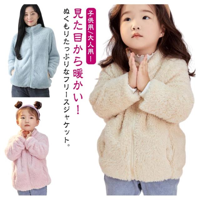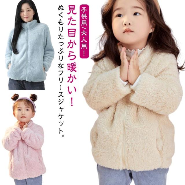 フリースジャケット アウター 秋 キッズ 男女兼用 ジャケット レディース スタンドカラー 立ち襟 ブルゾン メンズ ボアフリース コート フリースジャケット 冬 ポケット 親子 無地 厚手 暖かい もこもこ ふわふわ ジップアップ フリース