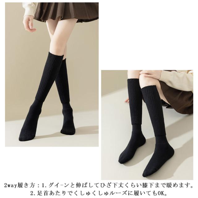 | 【足の冷え対策・快適な履き心地】 2足セット ハイソックス ルーズソックスは柔らかい素材を採用で肌に優しい、快適な履き心地を実現してくれます。 ふくらはぎの部分は厳選された粗い糸が精密に編み込まれており、空気をたくさん含んだふわふわでふかふかのソックスです。 暖かさと柔らかさを兼ね備えた、春秋に欠かせないアイテムです。 2way履き方:1.グイ-ンと伸ばしてひざ下丈くらい膝下まで暖めます。2.足首あたりでくしゅくしゅルーズに履いてもOK。 | |