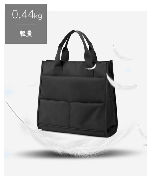 | シンプルな大容量カジュアルトートバッグ。 撥水加工付きなので少しの雨でも安心して使える! A4サイズ対応、ファスナー付きなど機能性抜群!メインの収納部には、A4サイズの書類やタブレットが余裕で収納できるオープンポケットが2つと、財布や資料などを収納するのに適したファスナーポケットが2つあります。フロントポケットが2つあるため、取り出しやすい収納をすることができます。 シンプルかつスタイリッシュなデザインは通勤・通学、旅行などビジネスからカジュアルまで様々なシーンにマッチします。 このビジネストートバッグには、充実したポケットが用意されています。 表面には高密度オックスフォードクロス生地を使用して、「撥水性」と「耐摩耗性」の両方を兼備したトートバッグです。 性別を問わずメンズもレディースも使用できます。 | |